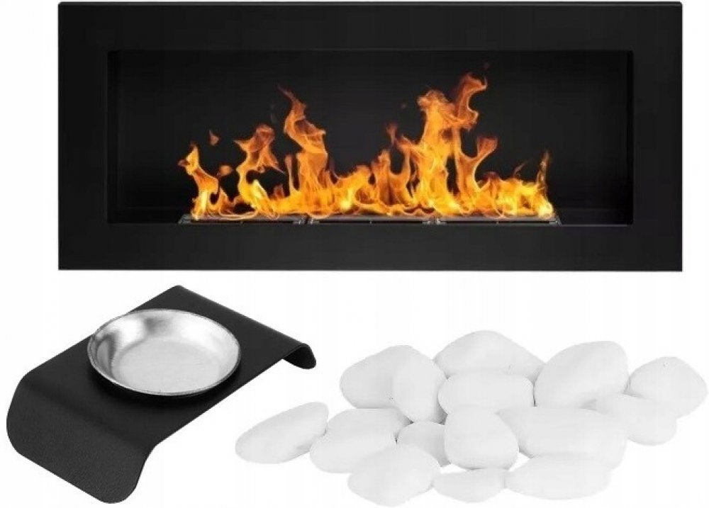 Bioetanolový krb Nice-House 900x400 mm bez skla.Černá barva.Bioethanolový krb je vyroben z oceli natřené žáruvzdornou barvou v matné černé barvě.Hořák o objemu 0,7 l a šířce 524 mm z kartáčované nerezové oceli. Bezpečný hořák - dvojité stěny, bezpečnostní otvory, keramická kartuše zabraňující úniku paliva, ukazatel stavu biopaliva. Krb je certifikován podlea splňuje normu PN-EN 16647:2015.Hořák nemá možnost nastavení velikosti plamene.V závislosti na množství kyslíku a kvalitě paliva je tepelný výkon 1,5 až 3 KW a doba hoření 1 litru 1,5 až 2 hodiny. EU.Bioetanolový krb lze zavěsit na rovnou stěnu (dvě montážní lišty jsou součástí dodávky).etanolový krb lze také namontovat do otvoru ve zdi. Při instalaci nebo montážikrbu do otvoru ve zdi je třeba postupovat tak, aby bylo možnékrb vyjmout, aniž by došlo k poškození zdi nebo instalace. Instalace musí být vyrobena z nehořlavého materiálu.Součástí dodávky jsou bílé kameny, které lze umístit za hořák, aby se zabránilo kontaktu s plameny.Bioetanolový krb bez skla.