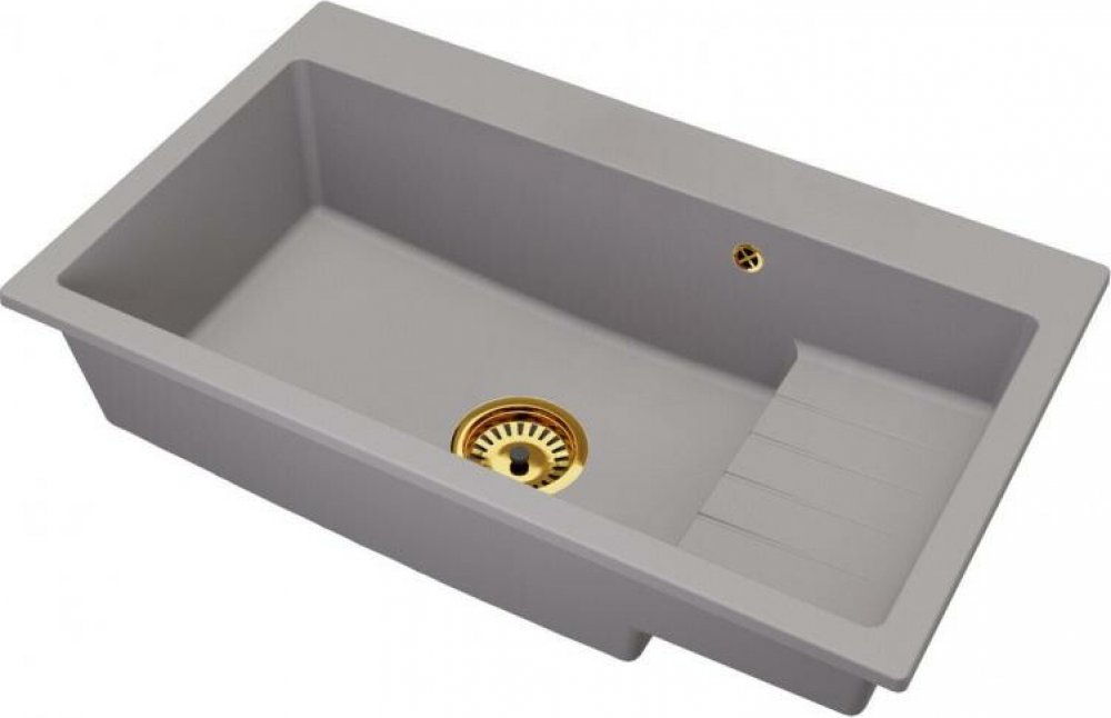 DobreSny Granitový dřez Aron šedý + zlatý sifon