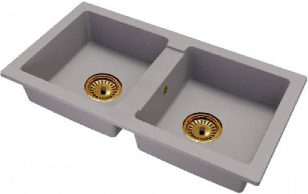 DobreSny Granitový dřez Borys šedý + zlatý sifon