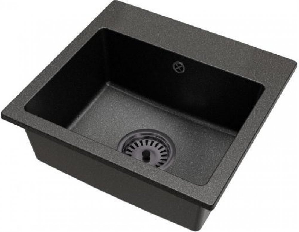 DobreSny Granitový dřez Don černý s texturou žuly + černý sifon