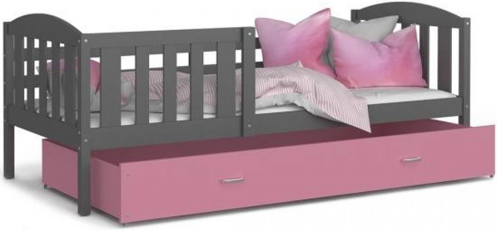 Dětská postel s šuplíkem vyrobena z přírodního dřeva a MDF desek. Stabilní borovicová konstrukce elegantního stylu současně se zásuvkou a rošty systému FLEX vytváří jedinečný komfort pro každé dítě.