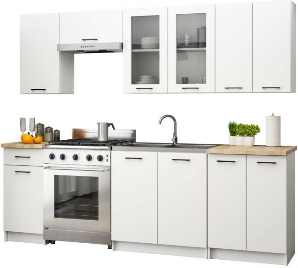 DobreSny Kuchňská linka Olivia V720 2,4 m s vitrínou bílá