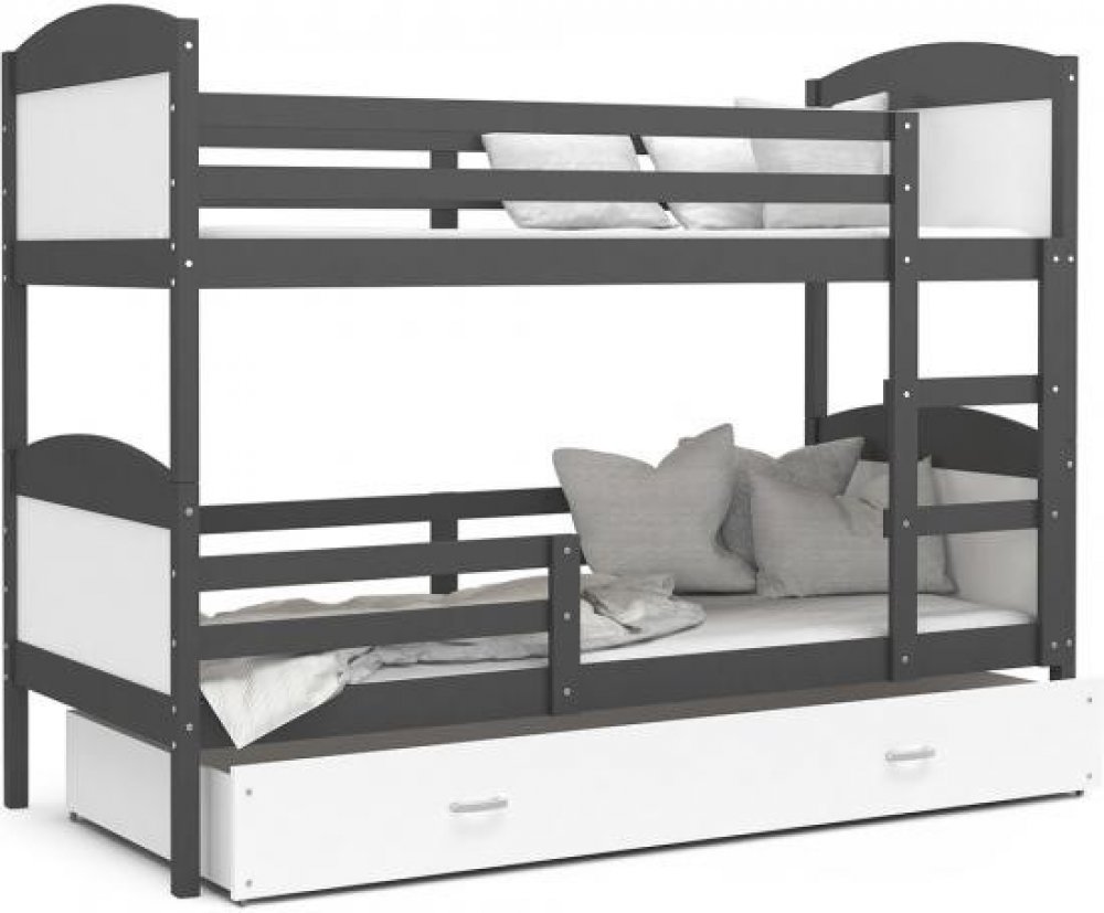 Postel MATYAS160 x 80 cm (168 x 86 cm)Balení obsahuje:- prostornou zásuvku na kolečkách- 2x flex rám vyrobený z vysoce kvalitního březového dřeva- 2x matraci z polyuretanové pěny se snímatelným potahemJako jedni z mála používáme lak na vodní bázi, který je bez zápachu a bezpečný pro dětské výrobky.Konstrukce z vysoce kvalitní MDF desky, vyznačující se odolností a snadnou údržbou.Ke každé posteli p...