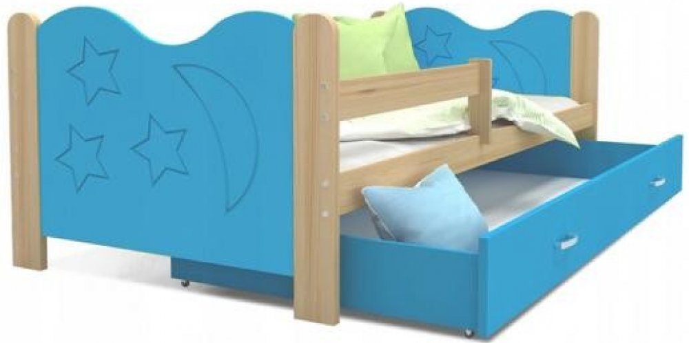 Praktické provedení této postele prokládá zajímavý design vyřezaných hvězd a měsíce. Postel je v různých rozměrech a barevných kombinacích.