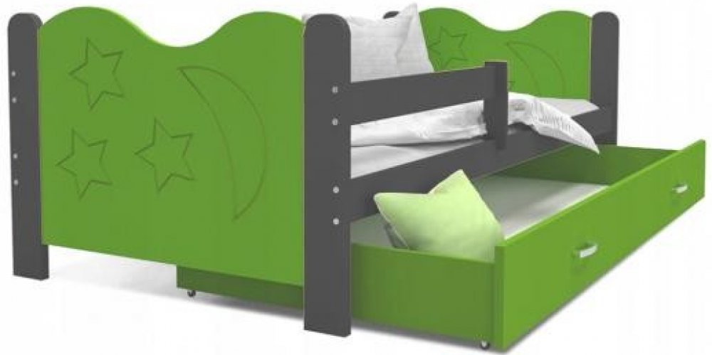 Praktické provedení této postele prokládá zajímavý design vyřezaných hvězd a měsíce. Postel je v různých rozměrech a barevných kombinacích.