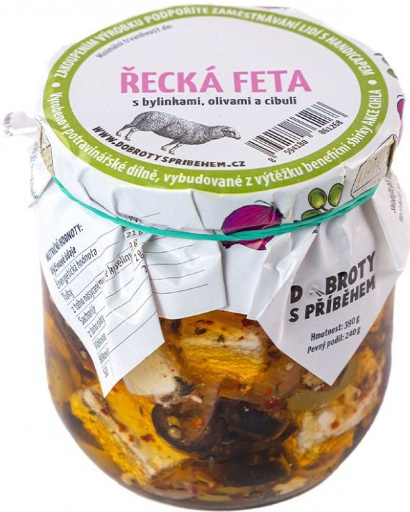 DOBROTYSPRIBEHEM.CZ Nakládaná řecká Feta s bylinkami a olivami 390 g