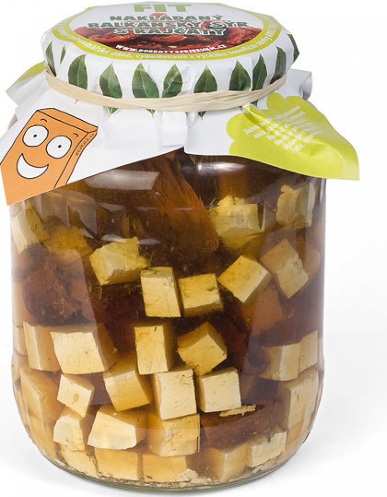 Složení: balkánský sýr 750 g, sušená rajčata 250 g, směs koření, rostlinný olej, voda