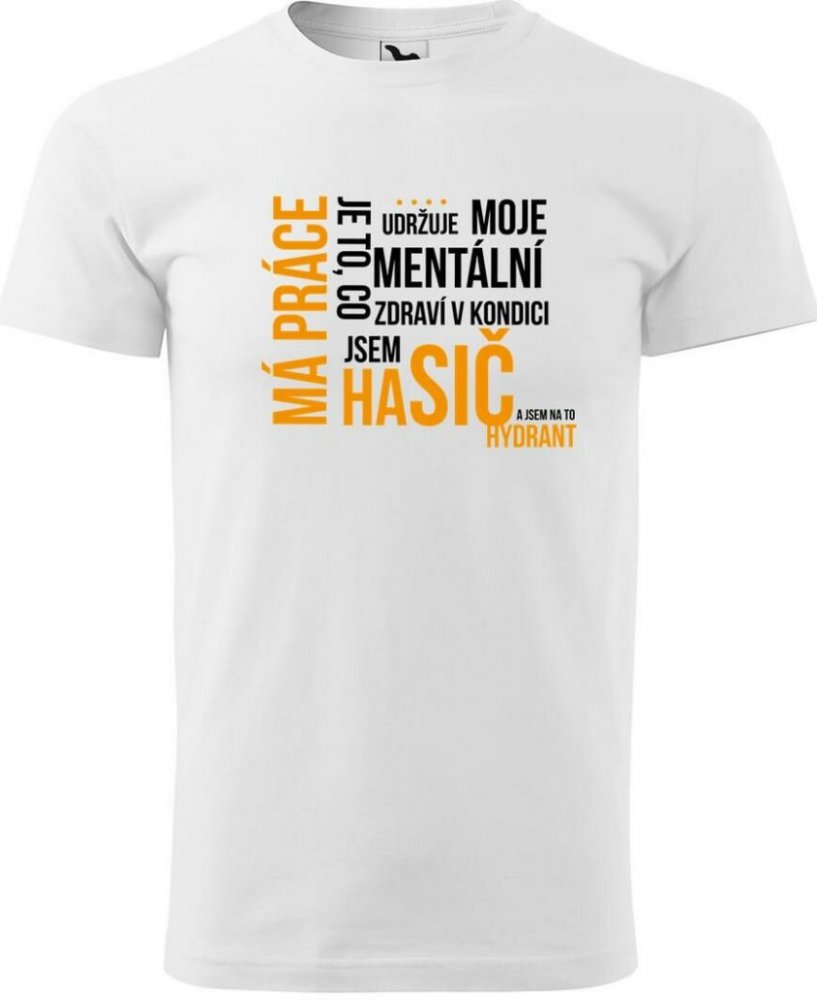 Vtipné pánské tričko s potiskem Má práce hasič - ideální dárek pro vaše blízké. Precizně zpracované tričko od našeho předního výrobce textilu MALFINI®. Tričko je vyrobeno ze 100% bavlny, díky které je velice příjemné na dotek. Ochranná silikonová vrstva prodlužuje životnost celého trička a stálost tvaru. Vysoce kvalitní digitální technologie potisku trička zaručuje výrazné barvy a odolnost vytiště...