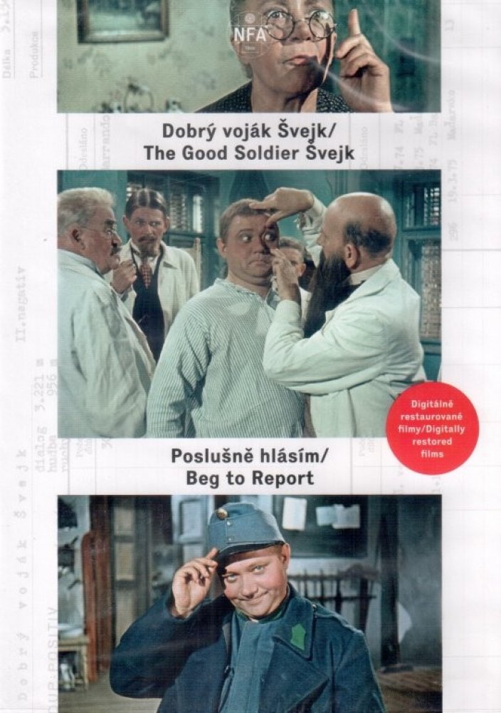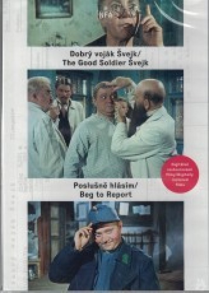 Všichni známe Dobrého vojáka Švejka a Poslušně hlásím. Jako předloha filmového zpracování sloužil satirický román Jaroslava Haška, který popisuje život vojáka v první světové válce. Pro přílišnou horlivost Švejka dochází k mnoha komickým situacím, ve kterých exceluje Rudolf Hrušínský jako Švejk. Rozložení děje do dvoudílného cyklu (druhý díl Poslušně hlásím byl uveden o rok později) umožnilo Karlu Steklému co nejvěrněji převést literární předlohu na plátno. DVD obsahuje řadu zajímavých bonusů:Trailer restaurované verze (2016), V pátek ráno (1957), Hovoříme o filmu (1983), Prosťáček (1945), Monstrekoncert (1916) a mnoho dalších. Režie a scénář: Karel Steklý. Hrají: Rudolf Hrušínský, Eva Svobodová, Josef Hlinomaz, František Filipovský, Miloš Kopecký, Svatopluk Beneš, Jaroslav Marvan, Miloš Nedbal, a další. Délka: 110 + 96 min. Zvuk: 2.0 Dual Mono Titulky: České a anglické Region: ALL Obrazový formát: 1.37:1