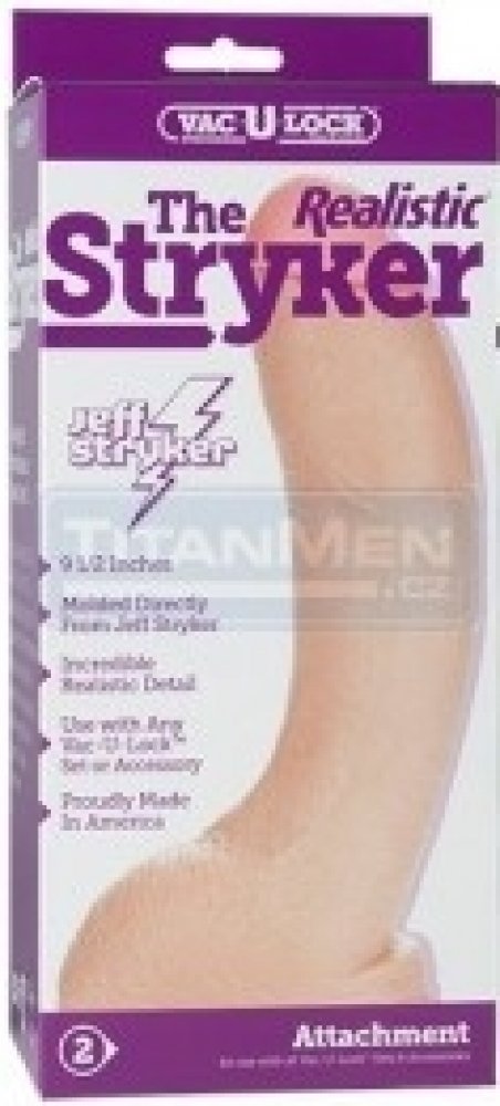 Prožijte svou porno fantazii! Velké realistické dildo se chová jako živý penis pornoherce Jeffa Strykera. Tlusté, dolů zahnuté dildo s plnými varlaty, jehož povrch na dotek nerozeznáte od lidské kůže. Díky odnímatelné Vac-U-Lock přísavce můžete dildo i přísavku kombinovat s jinými hračkami vybavenými systémem Vac-U-Lock. Celková délka 23,5 cm, použitelná délka 18,5 cm, průměr 4,8 – 5,5 cm. Vyroben...