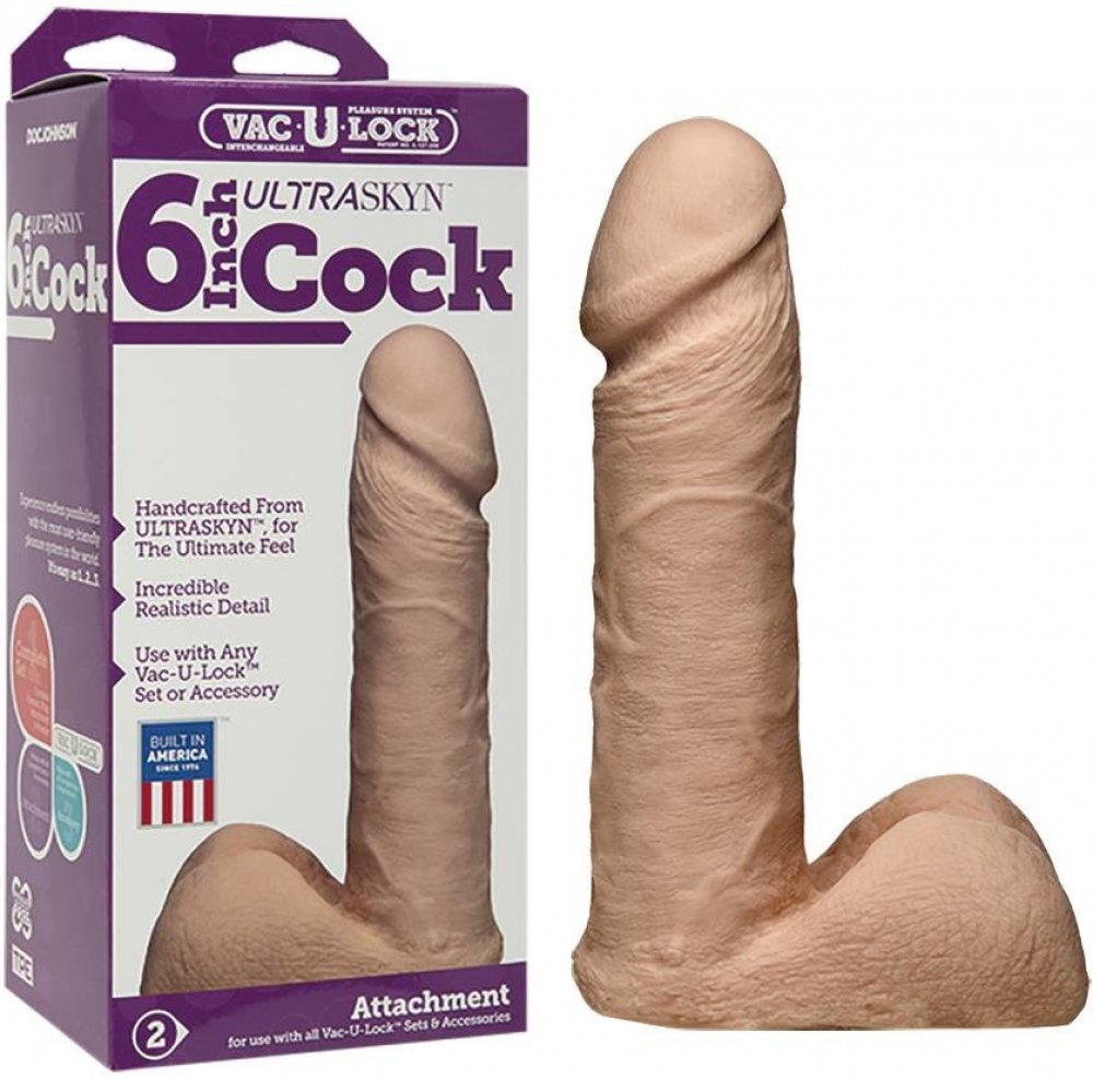 Realistické dildo ze série Vac-U-Lock Ultraskyn (Doc Johnson) s dokonale propracovanými detaily - plná varlata, vystouplé žíly a velký žalud. Materiál je ohebný a měkký silikon, zároveň také ale dostatečně pevný. K lubrikaci doporučujeme používat výhradně gely na vodní bázi. K desinfekci je vhodný antibakteriální sprej na erotické pomůcky. Balení obsahuje také vzorek ošetřujícího pudru. Kompatibilní s univerzálním harnesem Vac-U-Lock Supreme od Doc Johnson. Dildo lze používat i samostatně, bez harnesu. Rozměry: celková délka 18 cm, zasunutelná délka 16 cm, průměr 4 cm Barva: tělová Materiál (neobsahuje ftaláty): TPE Originální název: Vac-U-Lock - 6" ULTRASKYN™ Cock - Vanilla Výrobce: Doc Johnson (USA)