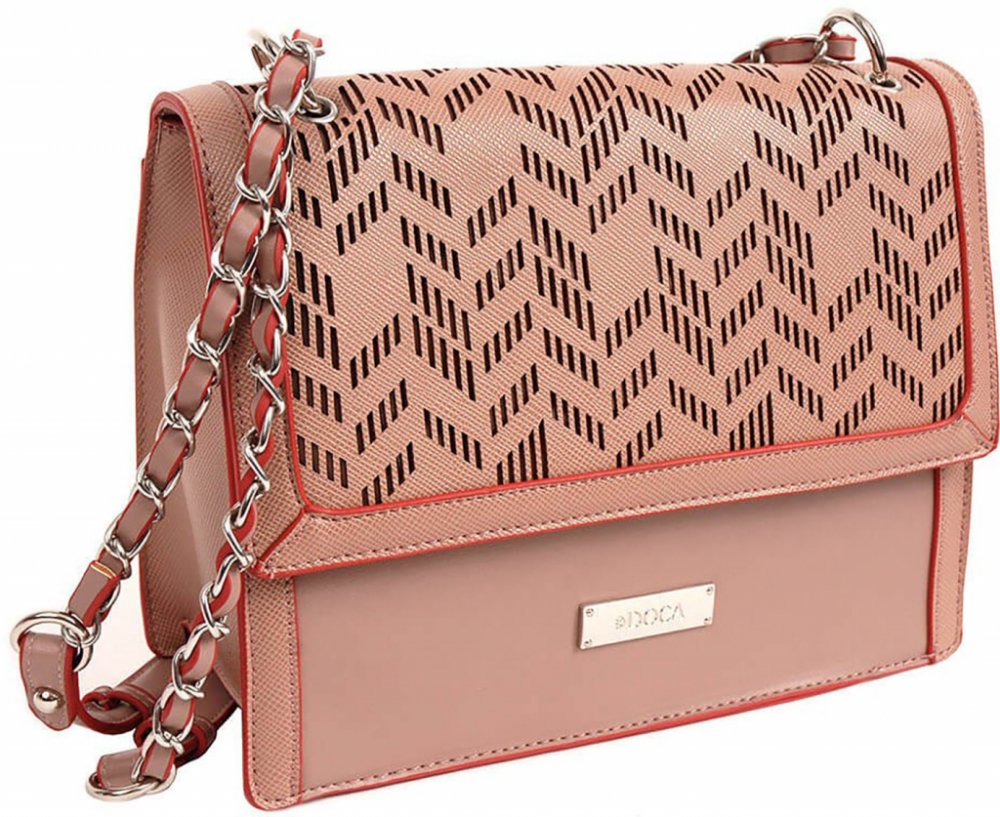 Trendy dámské crossbody značky Doca! Podzimní kolekce 2018 řecké značky Doca vám představuje luxusní dámské crossbody hnědorůžové barvy. Kabelka na první pohled zaujme svým vzorem na přední straně kabelky. Zapíná se na přední straně za pomoci patentku, ale i vevnitř na zip. Vnitřní část kabelky je podšita barevnou látkou s logem značky. Uvnitř na přední straně kabelky najdete kapsičku na telefon a na drobnosti. Na zadní straně kabelky je kapsička na zip. Součástí kabelky je nastavitelný popruh přes rameno.