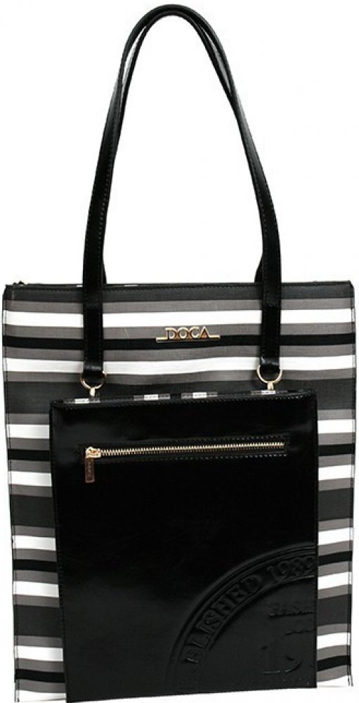 Praktická černo-bílá kabelka 2v1. Představujeme Vám kabelku řecké značky Doca z kolekce jaro/léto 2015. Kabelka je velmi praktická, jelikož přední černá kapsa se dá odepnou a po připnutí popruhu přes rameno se zní stane krásný messenger. Kabelka se zapíná na zip a její vnitřní část je podšita světlou látkou s logem značky. Kabelka má dvě oddělené velké kapsy na zip. Kabelka je dostatečně velká, takže se do ní vejdou dokumenty formátu A4. Součástí je odnímatelný, nastavitelný popruh přes rameno.