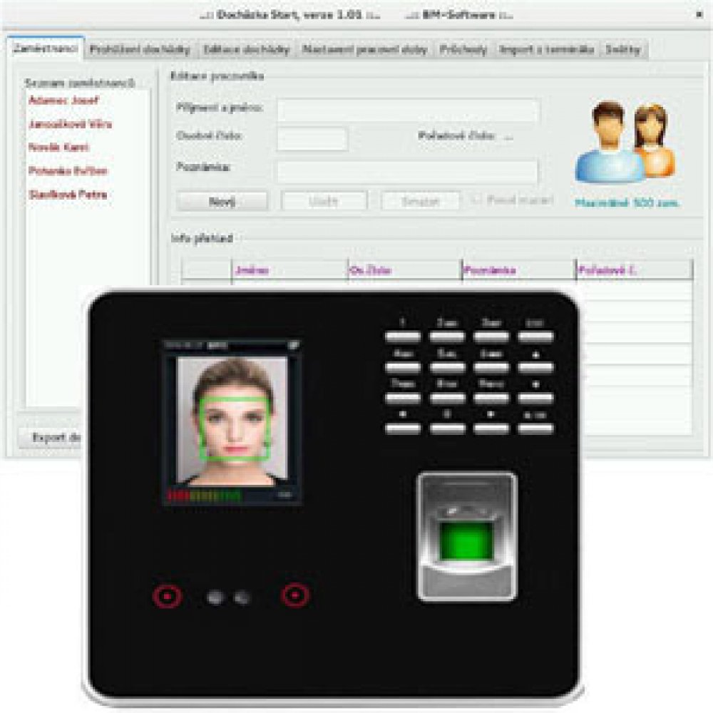 Jednoduchá verze SW docházkového systému obsahující základní funkce doplněná v setu o terminál BM-F300. Terminál umožňuje identifikaci otiskem prstu, rozpoznáním tváře nebo heslem. Má plně počeštěné menu i hlasové pokyny a používá se jako terminál na zadávání příchodů, odchodů, přerušení a absencí. Terminál má špičkový senzor a kvalita rozpoznávacího algoritmu je shodná s několika-násobně dražšími...