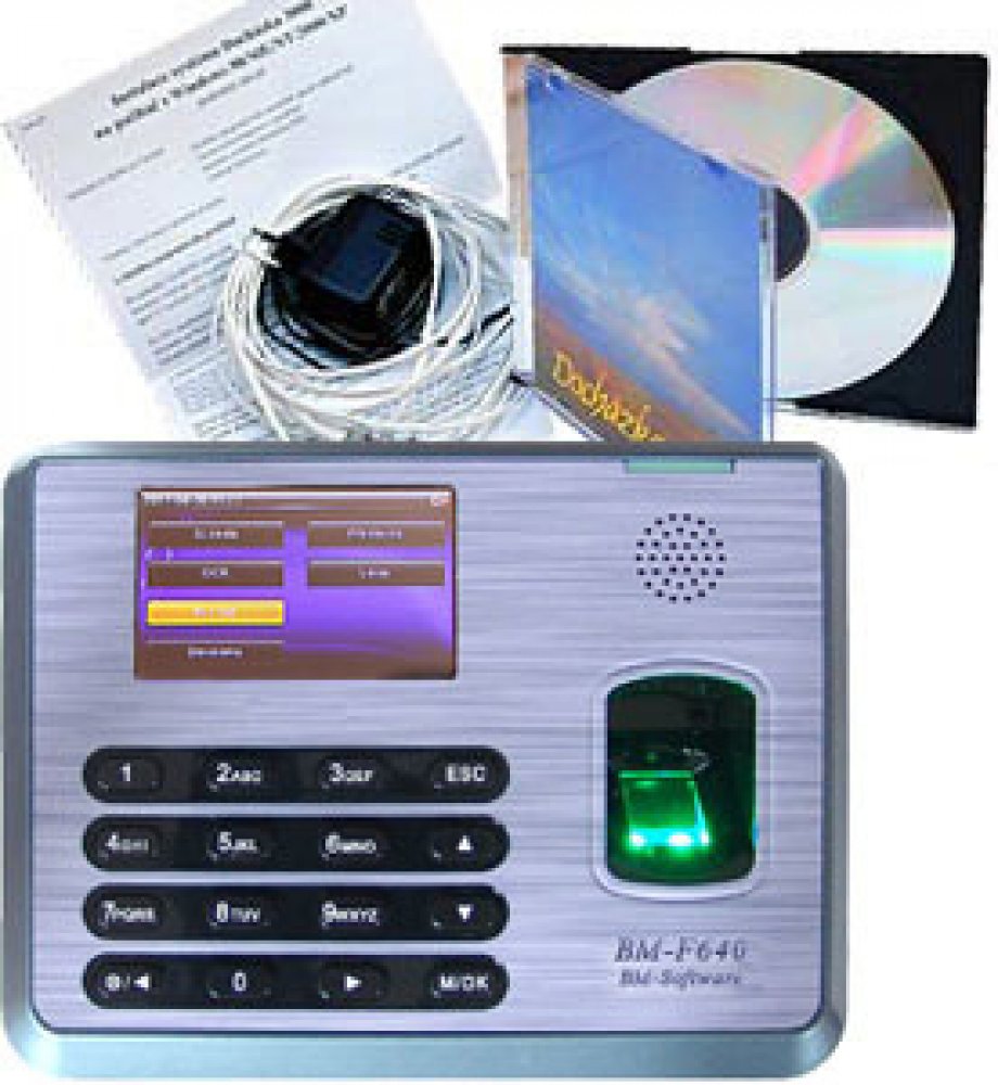 Nejnovější docházkový systém výhodný zejména pro menší a střední firmy s univerzálním terminálem pro pohodlné čipování docházky. BM-F640 je rozšířený docházkový systém na otisk prstu, karty a čipy. Docházkový systém - set evidence docházky ve verzi pro až 30 zaměstnanců s terminálem na otisk prstu, RFID karty a čipy. Tyto terminály mají velkou výhodu v tom, že umožňují použití všech 10 prstů při identifikaci zaměstnance. Takže pokud si některý prst poraní, čipuje si jiným. Identifikace otiskem je tak velice spolehlivá. Dále je možná identifikace bezkontaktní kartou, čipem nebo případně číselným heslem, pokud tyto metody identifikace u vybraných zaměstnanců povolíte. Terminál umožňuje zadávání 5 nebo 20 typů přerušení či absencí a lze povolit i zadávání čísla zakázek, typu práce nebo úkonu úkolové mzdy. Součástí je program Docházka 3000, tištěná dokumentace a terminál. SW lze stáhnout i elektronicky dle pokynů v návodu. Velice jednoduchá instalace - pouze připevnit terminál na zeď, zapojit zdroj do zásuvky, datový kabel do PC nebo sítě LAN, spustit instalační program a poté je již možné s docházkou pracovat. Program se dodává přednastavený, takže jen zapíšete jména zaměstnanců, nasnímáte jejich otisky do terminálu, případně doladíte nastavení pracovní doby. Vše je velice jednoduché a předchystané tak, aby instalaci a používání programu zvládl běžný uživatel. Samozřejmě je k dispozici telefonická podpora zdarma. Navíc je součástí i intuitivní videopresentace s ukázkou jak instalace, tak nastavení a používání systému. Docházkový systém nemá na rozdíl od konkurenčních produktů žádná omezení doby funkčnosti a je možné jej bez příplatku používat v počítačové síti, tedy pracovat s ním z neomezeného počtu počítačů. K dispozici jsou i další varianty pro jiný počet zaměstnanců, jiný typ připojení, jiné terminály atd. atd. Za příplatek 2210,- Kč je dostupná i varianta terminálu s WiFi, tedy možností bezdrátového připojení k počítačové síti. Další informace najdete na webu www.dochazka.eu