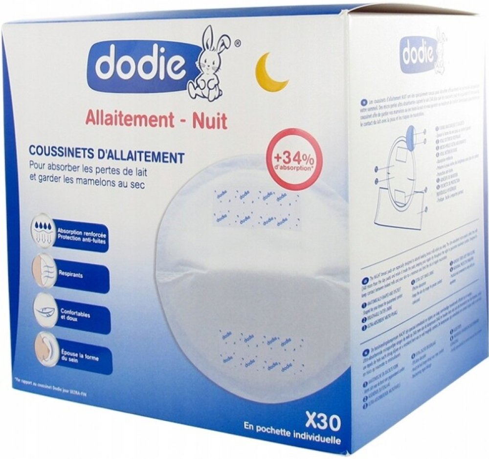 Vložky do podprsenky od značky Dodie jsou hedvábně jemné a tenké. Zaručují spolehlivou, diskrétní ochranu a jsou vysoce absorpční. Jsou vyrobeny z prodyšného materiálu, který poskytuje vysoký komfort při nošení a spolehlivě chrání oděv před znečištěním. Anatomický tvar společně se samolepicími pásky zamezují pohybu vložky v podprsence. Superabsorpční jádro a speciální vrstva odvádí vlhkost od pokožky. Noční prsní vložky navíc poskytují dlouhodobou ochranu a až o 52 % vyšší absorpci než denní prsní vložky od značky Dodie.