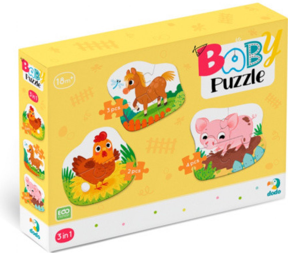 DODO Baby puzzle Zvířátka z farmy 3v1 2,3,4 dílků
