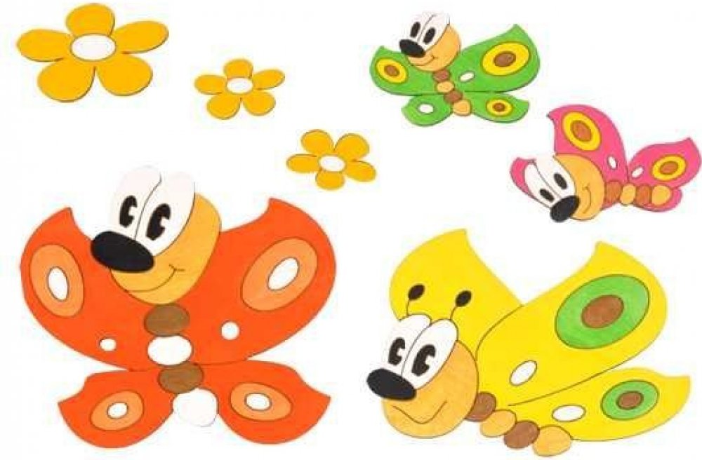 DoDo Dřevěné dekorace Sestavy dekorací Motýlci a kytičky