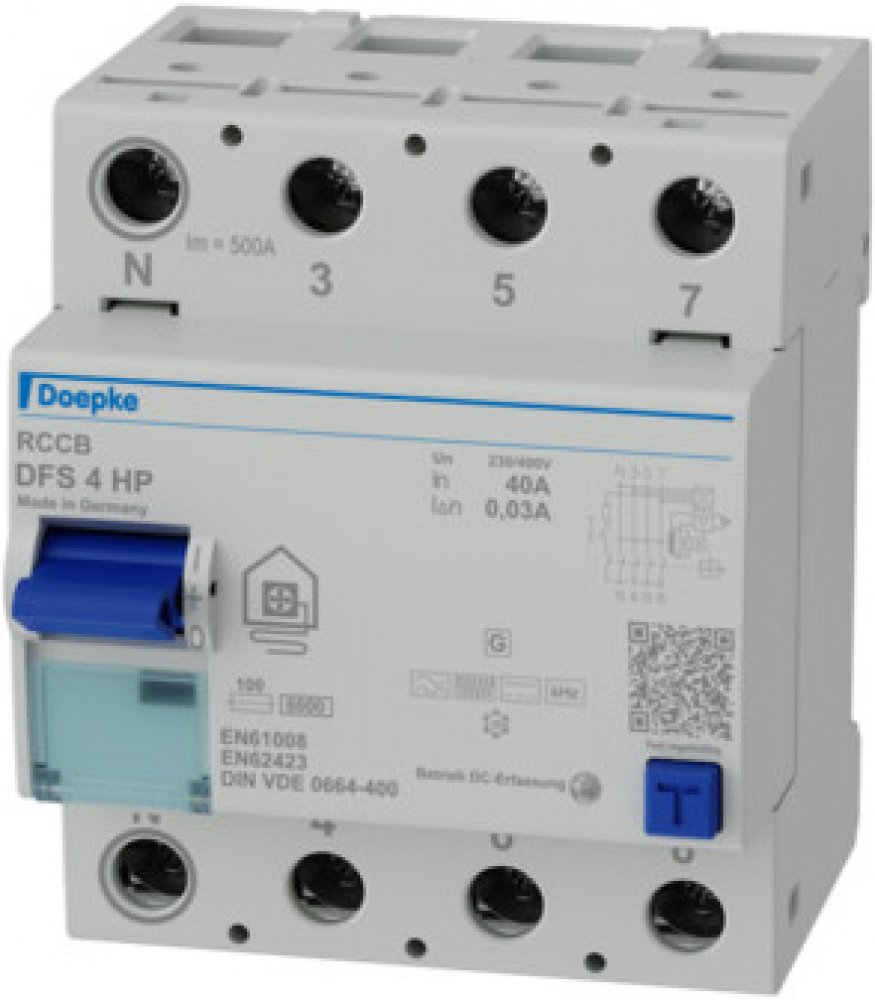 Proudový chránič je elektrický přístroj, který chrání proti zemním poruchovým proudům. Jeho úkolem je zabránit zásahu elektrickým proudem při porušení izolace nebo při náhodném přímém dotyku částí pod napětím. V případě poruchy elektrického obvodu pomáhá předejít vzniku požáru. Proudový chránič pro tepelné čerpadlo spojuje následující výhody: Ikona na chrániči ve formě tepelného čerpadla zajistí přímé přiřazení do rozdělení instalace, např. pro účely údržby. Chránič odpovídá specifikaci výrobce tepelných čerpadel: splňuje všechny požadavky normy. Protože v tepelných čerpadlech jsou obsaženy i frekvenční měniče, které mohou generovat hladké stejnosměrné proudy, předepisují mnozí výrobci použití proudových chráničů citlivých na střídavý a stejnosměrný proud. Optimalizované krátkodobé zpoždění: méně citlivé na poruchy v síti pro maximální disponibilitu zařízení K dispozici také jako proudový chránič s HD verzí (= Heavy Duty, verze odolná vůči drsným provozním podmínkám) a proudový chránič s nadproudovou ochranou, avšak bez HD verze Výhody: chránič citlivý na všechny proudy, požární ochrana dle VDE 0100-420, pro tepelná čerpadla (HP - Heat Pump), vyšší dostupnost systému: krátkodobé zpoždění optimalizované HP, jasná identifikace oblasti použití, nižší ztráta výkonu.