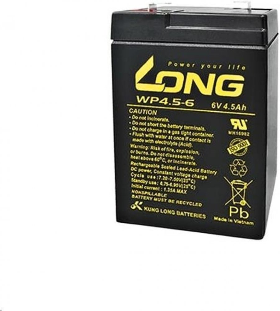 Externí akumulátor Triathlon PBQ 6V/4,5Ah (27 Wh) pro fotopasti Doerr SnapSHOT s 6V vstupním napětím a pro AutoFeeder X42, X12M. VRLA (Valve Regulated Lead Acid) olověný bezúdržbový akumulátor, pracovní teplota od -15° do +40°C,rozměry 7x4,7x10,6cm, hmotnost 810g. Připojení k fotopasti je možné kabelem s izolovanými plochými konektory Faston F1 187/4,8mm a napájecím konektorem 4mm/1,7mm (OD204364). Pro nabití akumulátoru je možné využít běžné nabíječky pro auta a motorky s výstupem 6V max 1,35A.