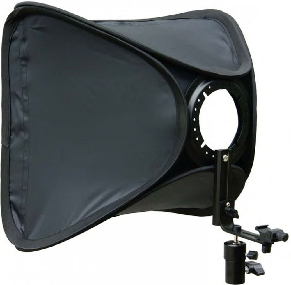 Softbox pro kompaktní elektronické blesky včetně uchycení na studiový stojan, dvou difuzorů a tašky. Ideální pro systémové blesky s RC ovládáním.