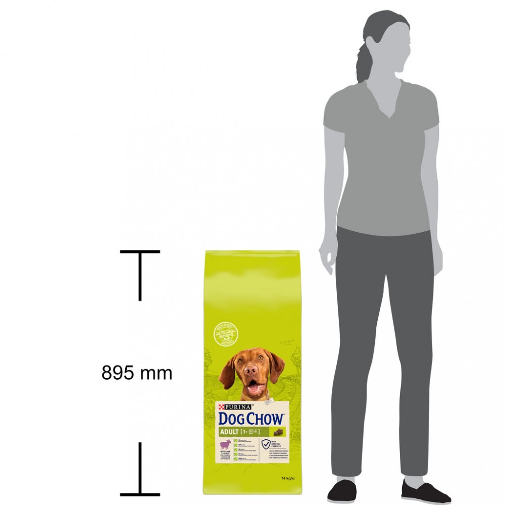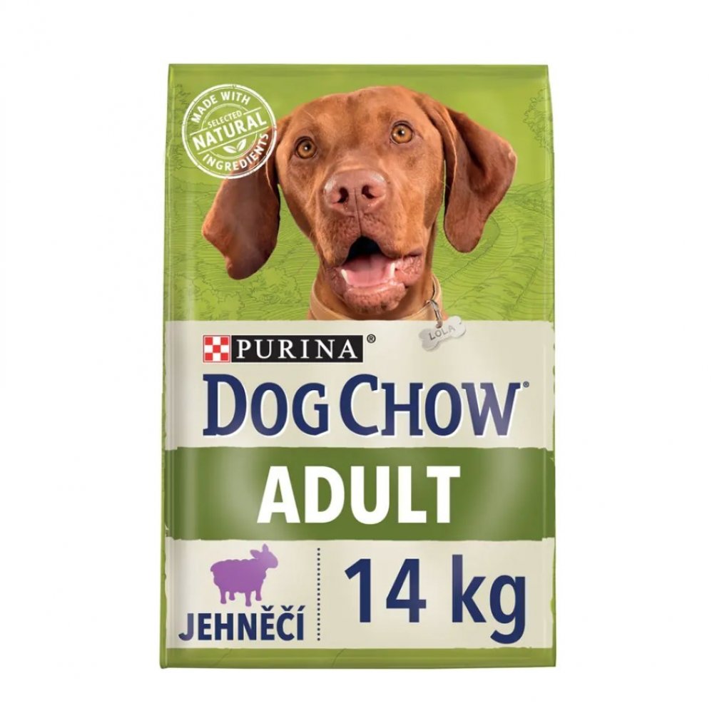 Kompletní krmivo Purina Dog Chow pro dospělé průměrně aktivní psy, s jehněčím masem jako dobrým zdrojem bílkovin, které podporují silné svaly a ideální tělesnou kondici, pro dospělé průměrně aktivní psy, obsahuje přírodní prebiotika.
