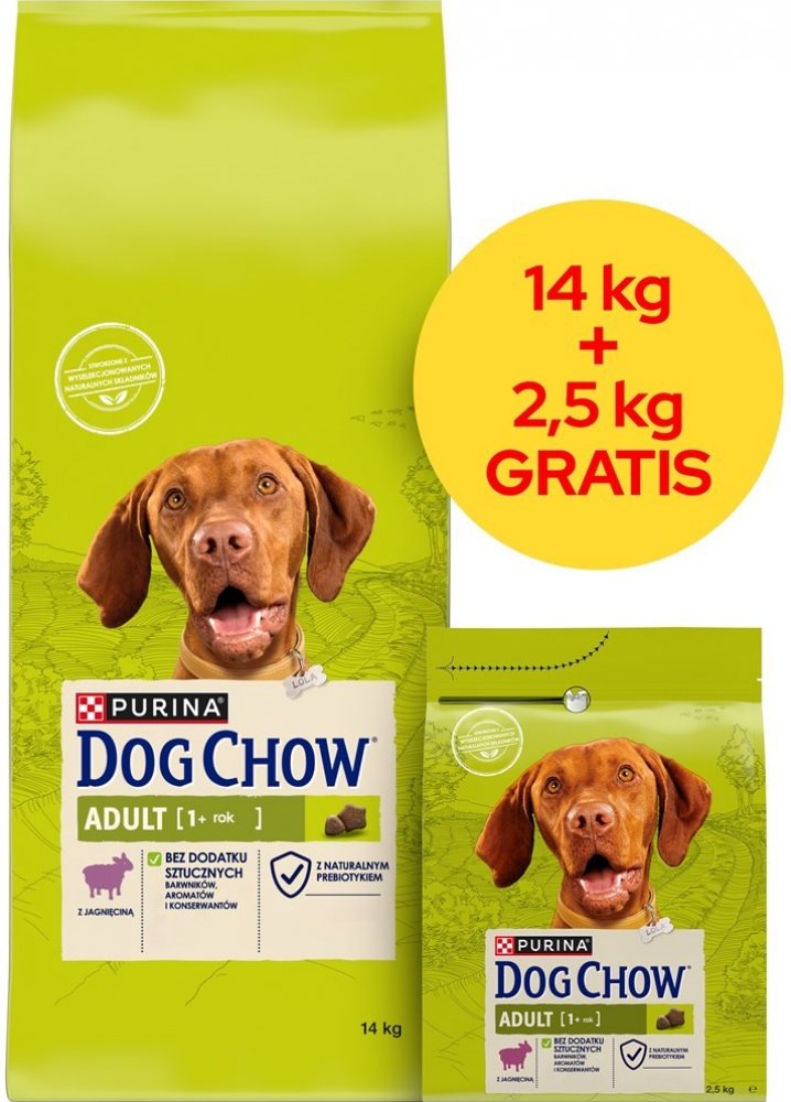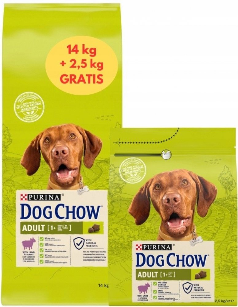 DOG CHOW ADULT LAMB (krmivo pro psy) JEHNĚČÍ 14+2.5 KG