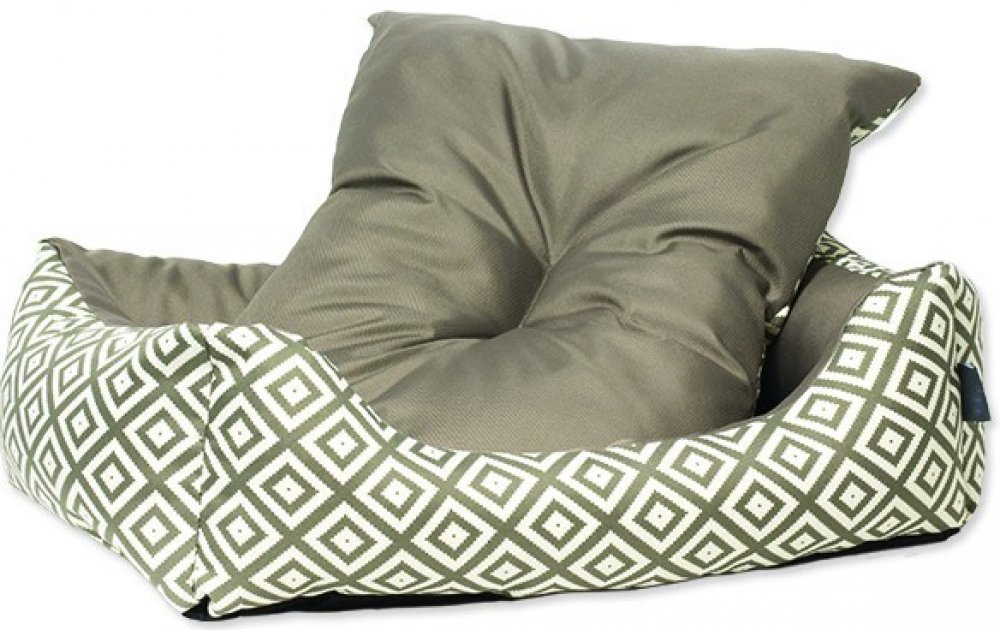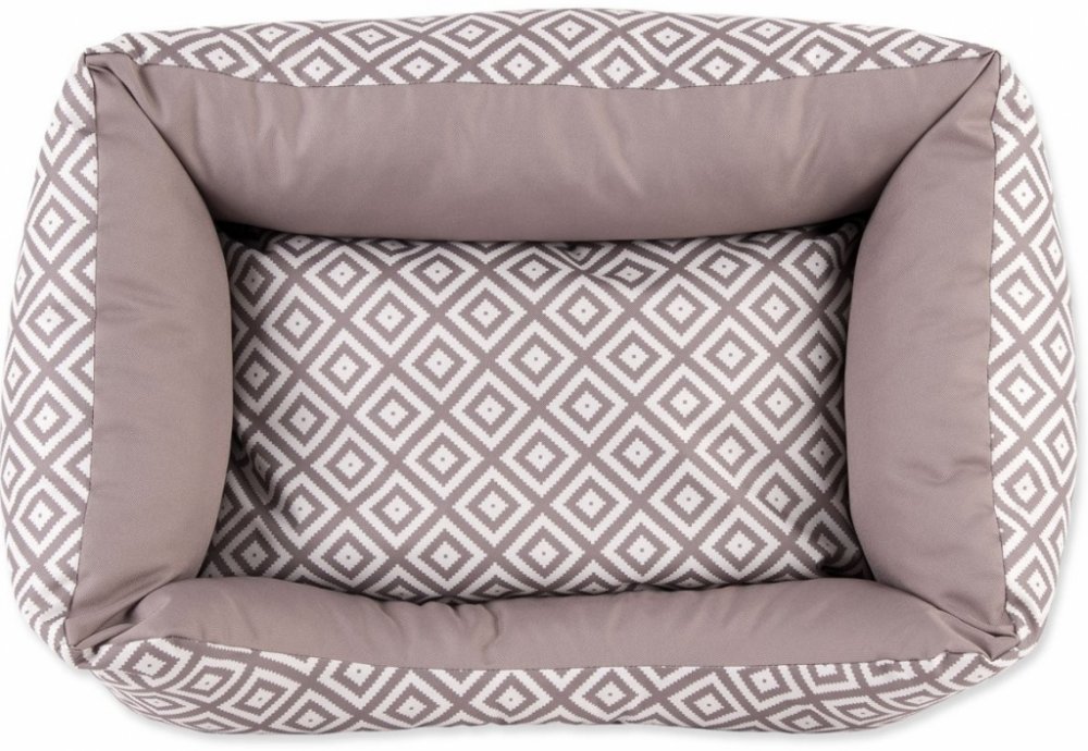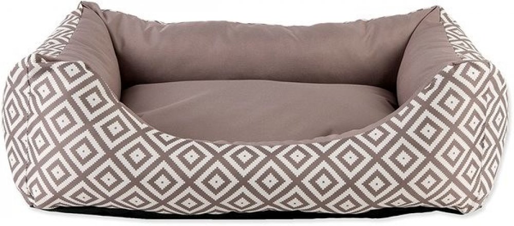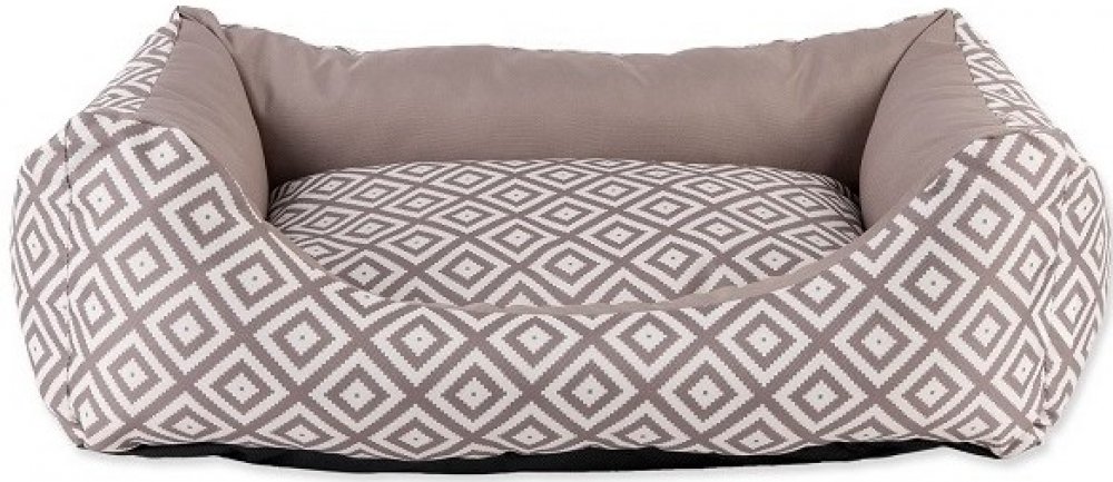 Voděodolný elegantní pelech pro psy. Elegantní bílo hnědý vzor. Všechny pelechy jsou pratelné. Vyrobené z odolné látky, která je voděodolná. Velmi snadné pro údržbu, chlupy neulpívají na látce. Potahová látka je z polyesteru – velmi jemná na dotek. Jsou plněné polyesterovým vláknem. Velikost 75 x 55 x 20 cm