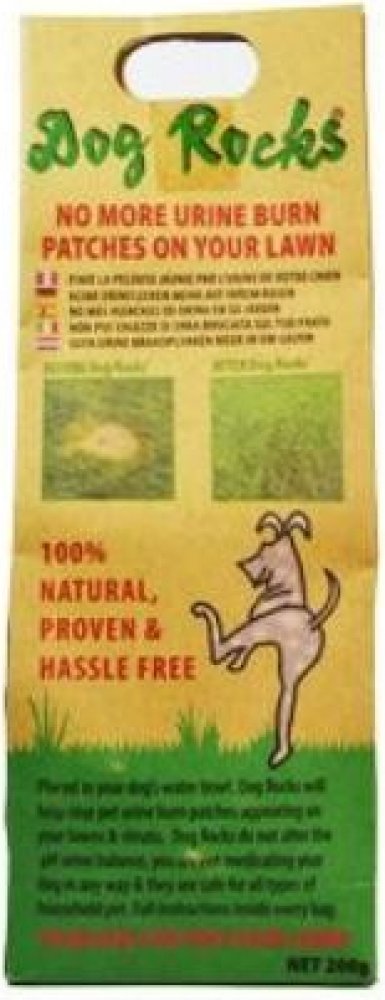 Jedinečný a ověřený produkt na eliminaci vypálených skvrn na trávníku poté, co jej Váš mazlíček použije na malou toaletu. Stačí vložit obsah balení Dog Rocks® do misky Vašeho domácího mazlíčka a naplnit misku vodou. Dog Rocks® odfiltruje z vody například některé dusičnany, čpavek a škodlivé stopové prvky, které jsou obvykle vylučovány močí a jejich vlivem dochází ke žloutnutí a následnému sp...
