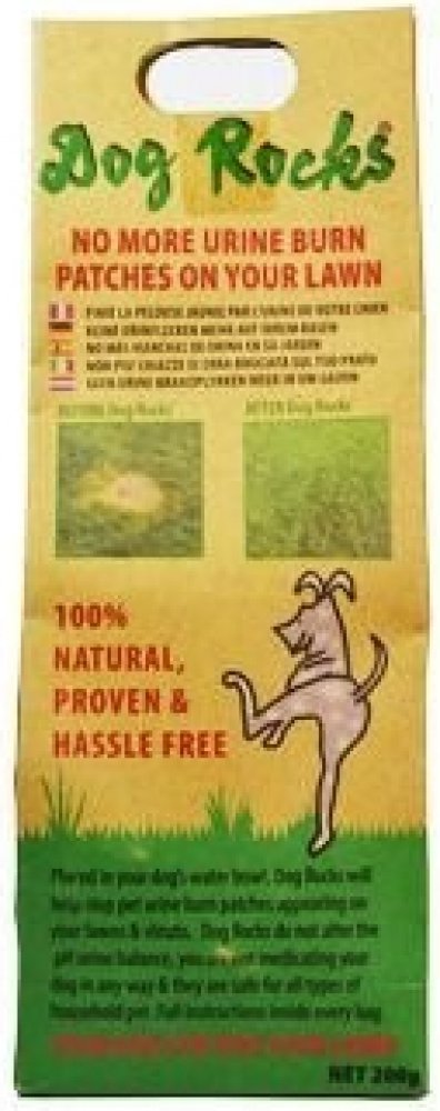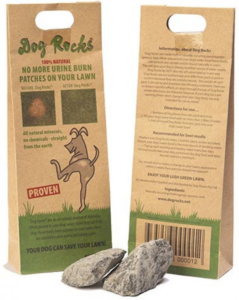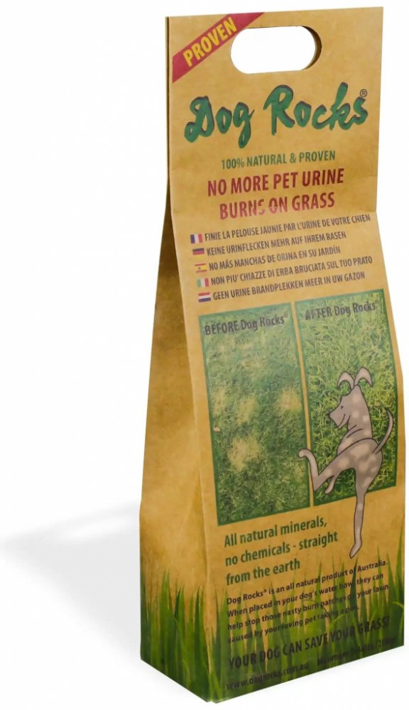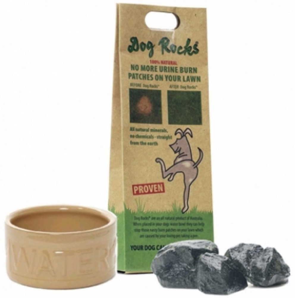 Jedinečný a ověřený produkt na eliminaci vypálených skvrn na trávníku poté, co jej Váš mazlíček použije na malou toaletu. Stačí vložit obsah balení Dog Rocks® do misky Vašeho domácího mazlíčka a naplnit misku vodou. Dog Rocks® odfiltruje z vody například některé dusičnany, čpavek a škodlivé stopové prvky, které jsou obvykle vylučovány močí a jejich vlivem dochází ke žloutnutí a následnému spálení trávníku. Kameny Dog Rocks® dodávají Vašemu čtyřnohému kamarádovi čistší zdroj vody a podporují aktivní, ekologicky uvědomělý životní styl. Užijte si více času hraním s Vaším čtyřnohým parťákem a společnou relaxaci na zahradě s vědomím, že Vaše tráva zůstává zelená a rutina Vašeho mazlíčka zůstává nezměněna. Dog Rocks® představují skutečnou pomoc pro Váš trávník!