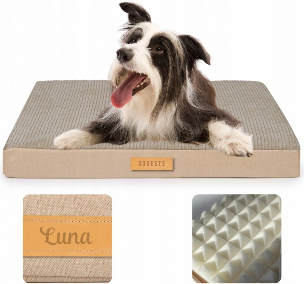 Pelíšek pro psa MATRACE Potah XL gravírování jméno DÁREK 90x70✴ Pelíšek pro velké a střední psy – Dogeste