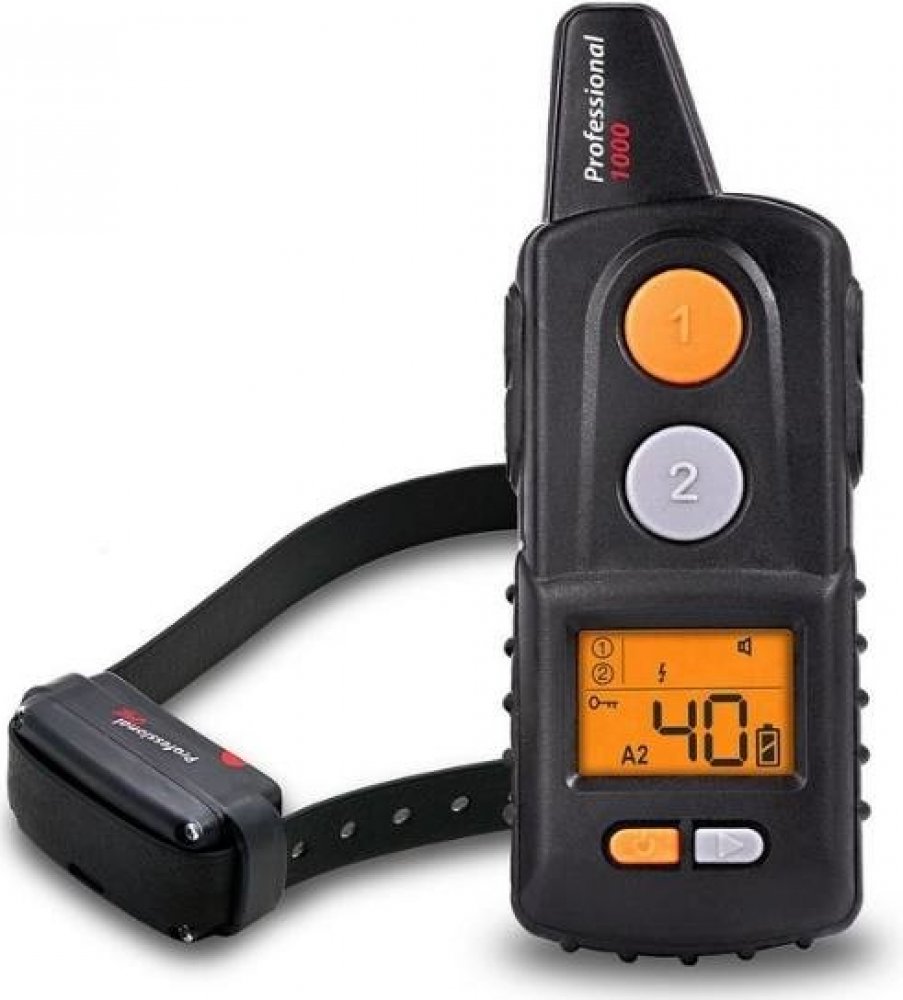 Elektronický výcvikový obojek D-Control Professional 1000 ONE vhodným obojkem pro profesionální, sportovní a služební výcvik všech plemen psů. Modely ONE jsou určeny pro nejmenší plemena psů od 1 do 15 kg (jezevčík, jorkšírský teriér nebo shi-tzu). Dosah 1000 m vám bude dobře fungovat i v členitém nebo zalesněném terénu, kde se obvykle dosah výcvikových obojků vlivem prostředí zkracuje. Dogtrace D-Control 1000 Professional ONE vám navíc umožňuje si pod vybranými tlačítky nahrát vlastní režim. To znamená, že si vlastně můžete funkce naprogramovat na míru, jak to vyhovuje vám. Na každé tlačítko je možné navolit jednu z funkcí: zvuku, vibrace, impulsu, booster nebo světla, které zviditelní vašeho pejska ve tmě. Přijímač psa se díky průhledné krabičce rozsvítí podle režimu, který nastavíte. Funkce Booster vám dovolí skokové navýšení impulzu v krizových situacích. Obojek je dodáván s plně ponořitelným přijímačem i vysílačem, je tak ideální volbou pro trénink ve vodě nebo extrémních podmínkách (les, bahno) nebo v blízkosti vody. Vysílačka má pogumované boky a je vyrobena z odolné nárazuvzdorné konstrukce, LCD podsvícený displej zajistí jednoduché a přehledné nastavení obojku. Pohotovou manipulaci umožní také zapnutí či vypnutí zařízení pomocí magnet. Životnost 2x AAA baterii 1,5V ve vysílači je 6 až 12 měsíců, přijímač je dobíjecí s pohotovostním režimem až 90 hodin.