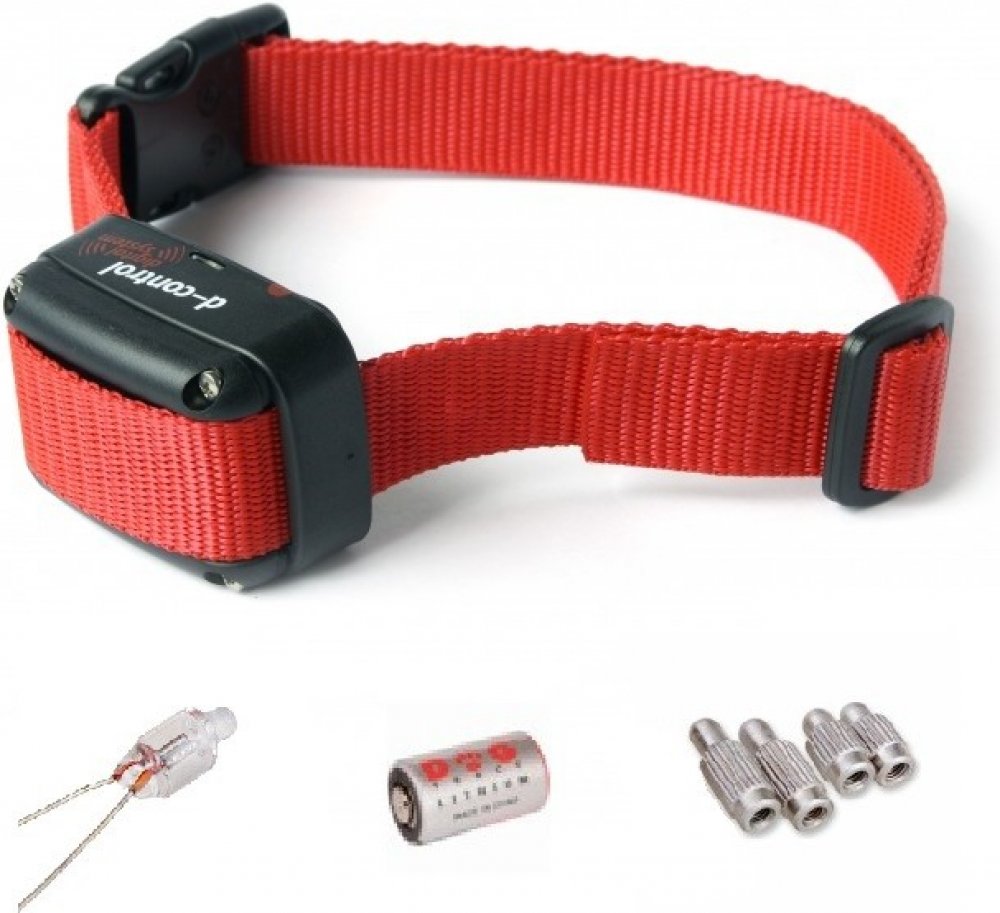 Náhradní obojek DOGTRACE d-control pro dalšího psa - Součástí balení je veškeré příslušenství: baterie CR2 3V, elektrody 12 a 17 mm, testovací doutnavka, tkaný řemen v délce 75 cm (standardně dodáván v červené barvě). (Není kompatibilní se starými vysílači se žluto-červenou klávesnicí a vysílači d-control mini) Obojek pro dalšího psa k výcvikové sadě d-control disponuje funkcemi impuls, zvuk.
