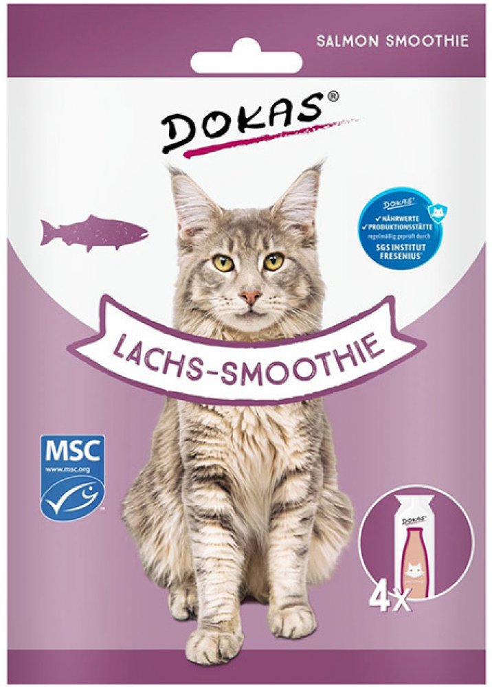 SLOŽENÍ: losos 60 %, vedlejší rostlinné produkty, mořská řasa Kombu, celer, borůvky