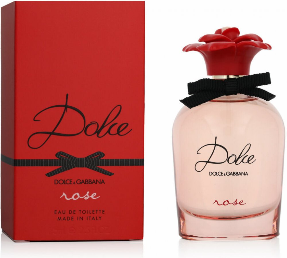 Dolce&Gabbana 75 ml dámské toaletní vody květinové pro denní nošení s celodenní výdrží (4-8h) romantické a smyslné Dolce Rose 2021 z Velké Británie mainstreamové červený rybíz, mandarinka, zelené jablko broskev, magnólie, růže pižmo, santalové dřevo se střední projekcí jarní kompatibilní s růží, s broskví, s pižmem Dolce & Gabbana klasické TSA kompatibilní (≤100ml) rozprašovač 317 g standardní