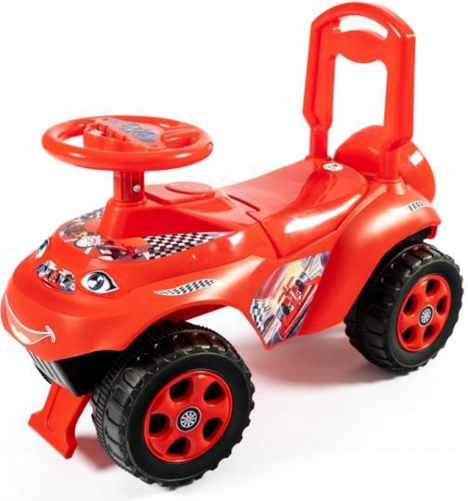 Automobilový vozík se stane oblíbeným dopravním prostředkem dítěte doma i na ulici. Konstrukce odrážedlo je stylizovaná jako skutečné auto, karoserie je vyrobena z odolného plastu, 4 široká kola s dezény, volant a pohodlné sedadlo s opěradlem. Přední kola se otáčejí společně s volantem. Autíčko je odolné proti převrácení, na přední i zadní straně je ochrana před předměty padajícími pod ním. Pod sedadlem se nachází krabička pro skládání malých hraček. Volant se otáčejí na dvě strany. Můžete pomoci dítěti jezdit pomocí úchytu na tlačné zařízení zezadu. Maximální zatížení 30 kg.