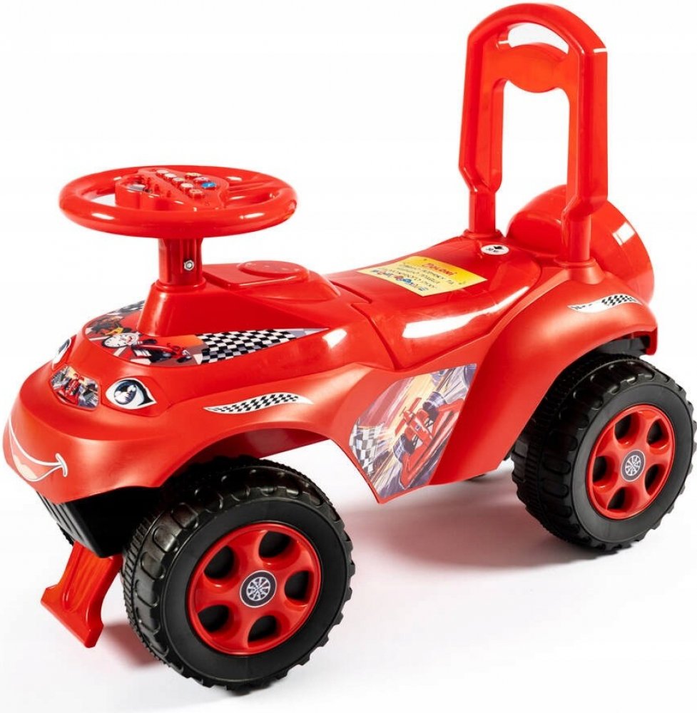 Automobilový vozík se stane oblíbeným dopravním prostředkem dítěte doma i na ulici. Konstrukce odrážedlo je stylizovaná jako skutečné auto, karoserie je vyrobena z odolného plastu, 4 široká kola s dezény, volant a pohodlné sedadlo s opěradlem. Přední kola se otáčejí společně s volantem. Autíčko je odolné proti převrácení, na přední i zadní straně...