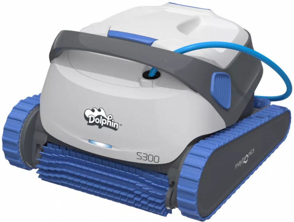 Model Dolphin S 300 má snadno přístupný filtrační koš z vrchu vysavače ,1 aktivní čistící kartáč, který je schopný vyčistit dno a stěnu bazénu. Má 2 čistící cykly – dno a dno + stěna bazénu + hladinová linka. Doba čistícího cyklu je 1 hodina dno a 2 hodiny dno, stěny a hladinová linka .Délka kabelu je 18 metrů a robot je tedy schopný vyčistit bazény až do rozměru 12 x 6 m. Balení obsahuje duální filtrační koš 100 / 20 mic. Robot je vhodný pro bazény s rovným i nerovnoměrným dnem a pro všechny tvary a typy bazénů. Je vybaven systémem pro rychlý odtok vody při vyjmutí vysavače z bazénu a tím je velmi zjednodušena manipulace s robotem. Oproti modelu S 200 lze vysavač ovládat přes mobilní aplikaci. Součástí balení je přepravní vozík.