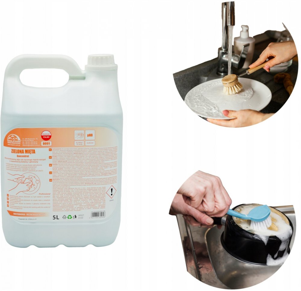 TEKUTÝ PŘÍPRAVEK NA NÁDOBÍ S VŮNÍ ZELENÉ MÁTY – KONCENTRÁT – 5 L