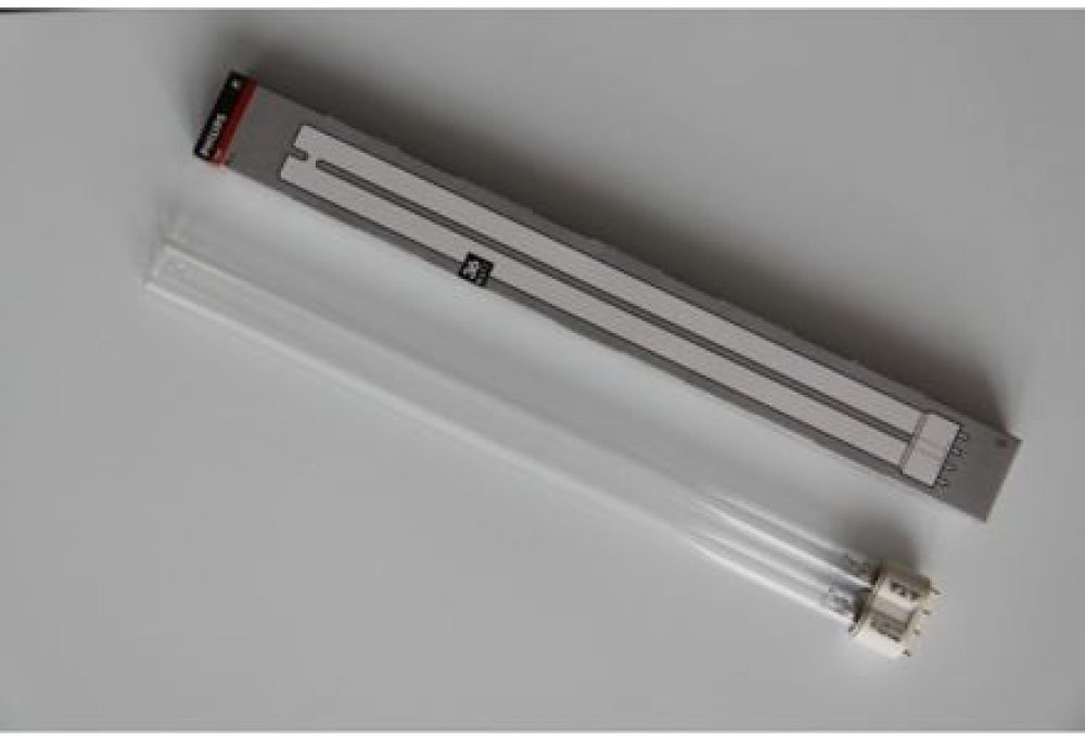 UV zářivka PL-L 36 W, náhradní díl pro UV lampuNáhradní UV žárovka/ zářivka o UVC výkonu 36 W.Používají se do UV lamp značek Oase, Pontec, Hailea, Heissner, Velda, Fiap, Tetra, Jebao, Aquaking, Atman, Resun, Sera, Steril pool, Aquacup, UV pond a další. Délka žárovky je 415 mm včetně kontaktů. Životnost žárovky je 8000 h.