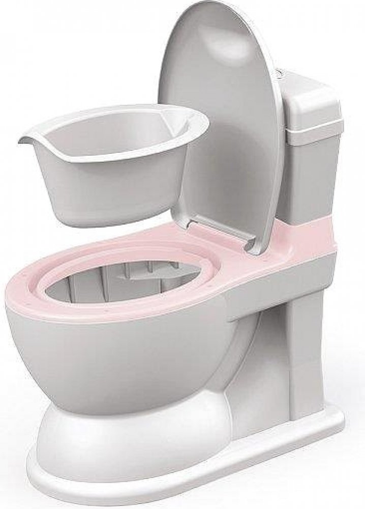 Přesto je základem tohoto výrobku vyjímatelný nočník, který je omyvatelný. Na boční straně toalety je držák na toaletní papír. Na horní části toalety je splachovadlo, které vydává stejný zvuk jako při spláchnutí a zároveň má světelný efekt. V atraktivní neutrální bílo-růžové barvě.