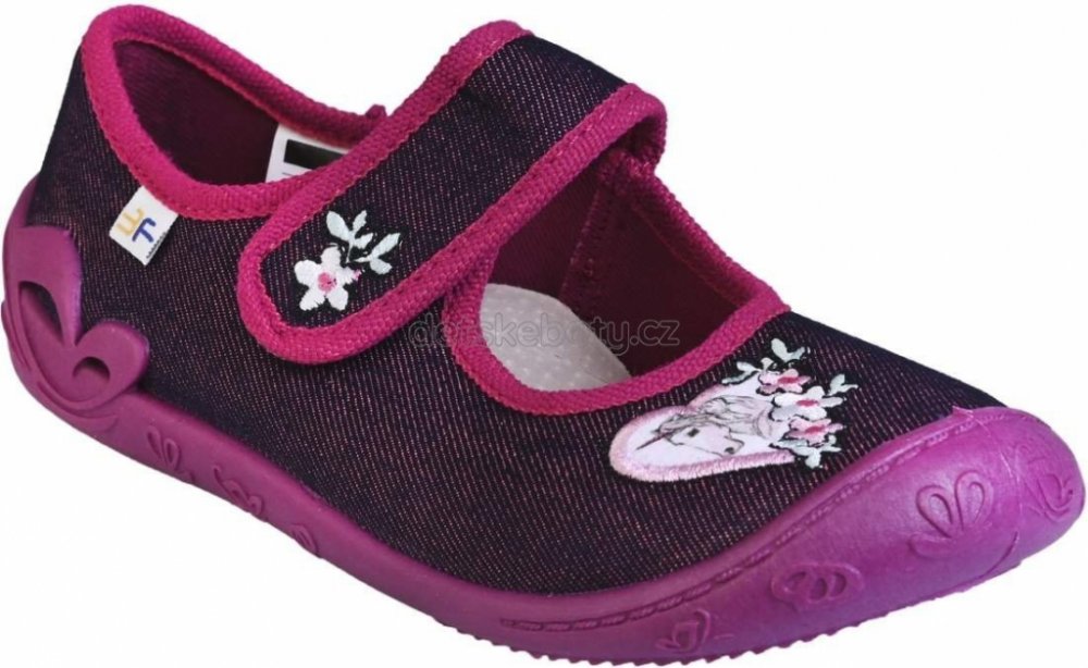 Domácí textilní obuv se zapínáním na suchý zip.Je lehká,maximálně ohebná.Uvnitř kožená stélka,která zajišťuje chodidlu čistotu a komfort.