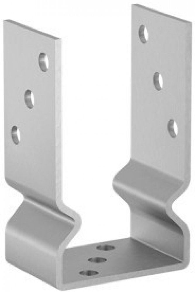 Kotevní patka sloupku k přišroubování do pevného podkladu s prolisem.