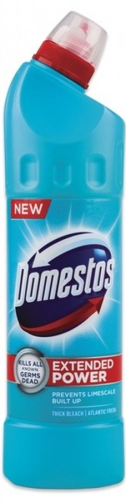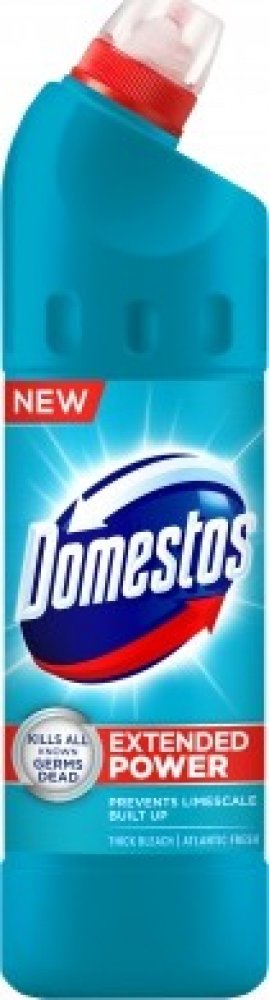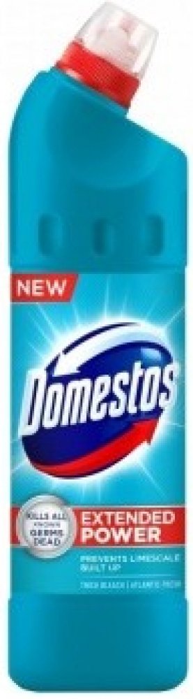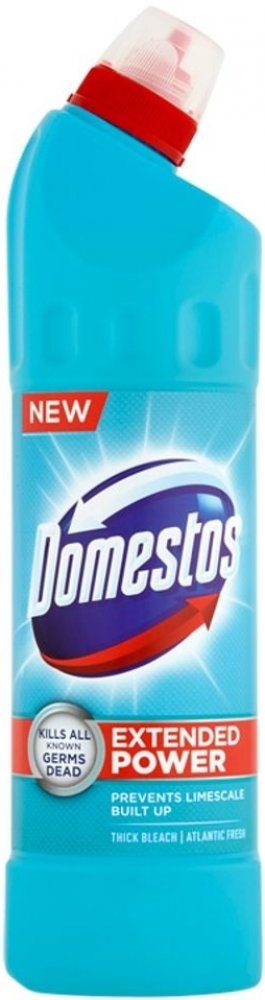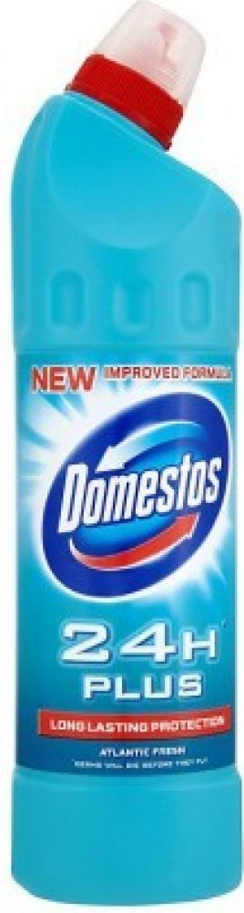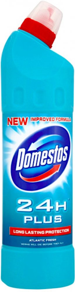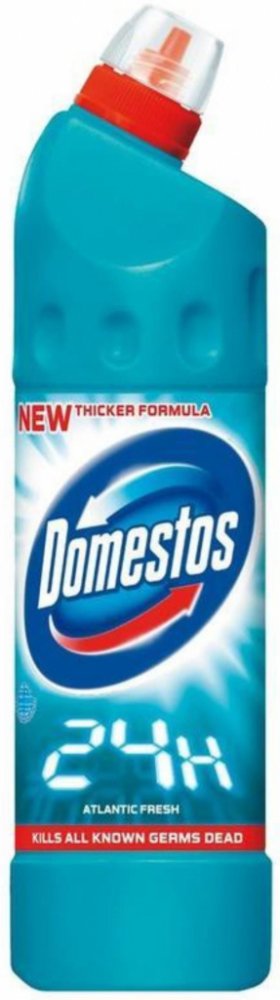 Domestos Atlantic fresh je tekutý dezinfekční a čistící přípravek, který zabíjí všechny známé druhy bakterií ve vaší WC míse. Díky vylepšenému složení přilne k povrchu toaletní mísy a zůstává rovněž i po spláchnutí. Domestos je možné používat v celé domácnosti, a to jak v neředěném stavu, tak ředěný s vodou. Vhodný je i pro čištění a dezinfekci úklidových pomůcek. Udržujete hygienickou čistotu s Domestosem. Přípravek místnost provoní svěží vůní oceánu.