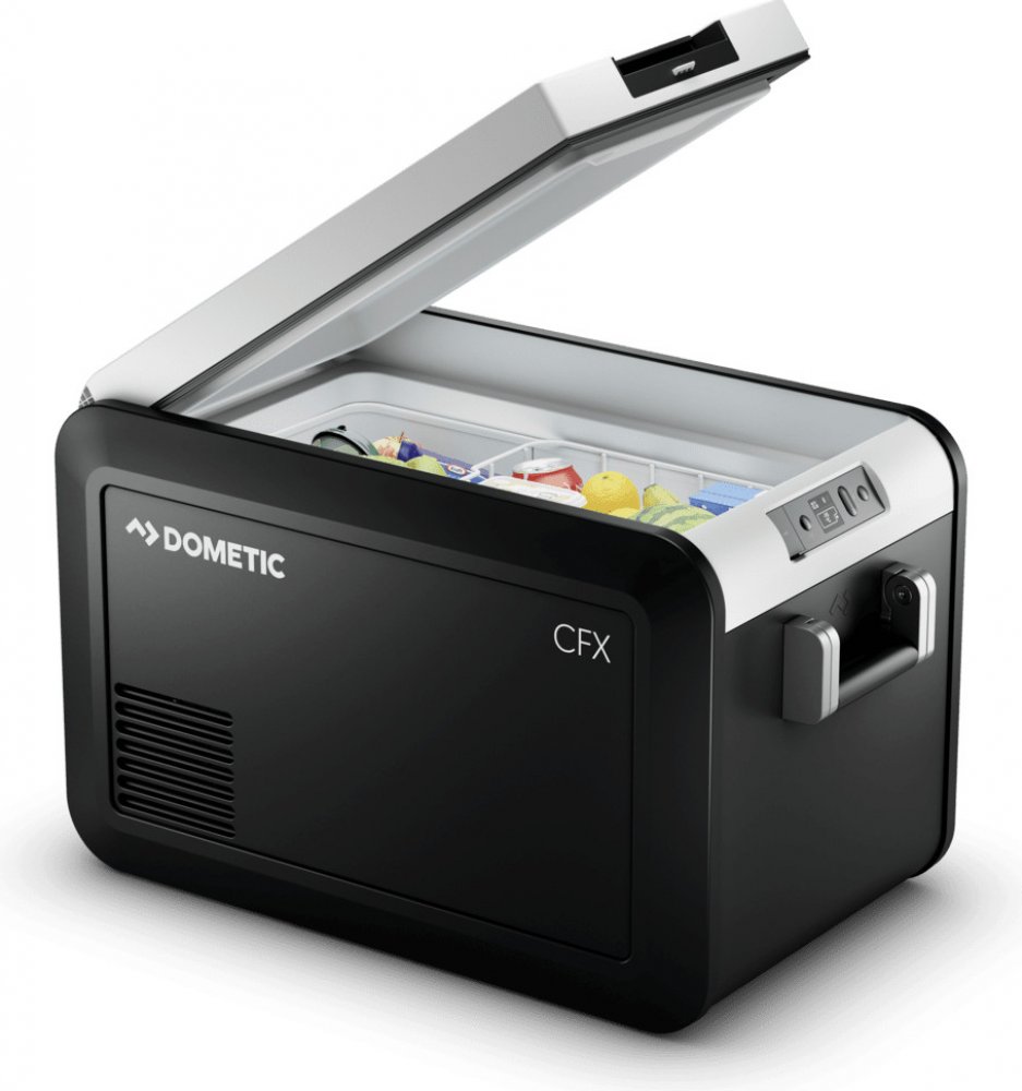 Nový model kompresorové autochladničky/automrazničky Dometic CFX generace 3 poskytuje extrémní výkon chlazení a energetickou účinnost. Tento model má výborně řešený vnitřní prostor, v kombinaci se silnou a odolnou izolací také vynikající chladicí účinek. Chladnička je vybavena robustními prvky: masivním otevíráním, panty a rukojeťmi. Dále je vybaveny nejnovějšími technologiemi, jako je nový kompresor a modernizované VMSO (optimalizace variabilní rychlosti otáček motoru) a integrovaný vysílač WLAN. Ledničku lze ovládat pomocí WLAN a příslušné aplikace, kterou je možné nainstalovat na kompatibilní zařízení. Chladnička je vybavena digitálním displejem, kontrolními, indikačními a alarmovými funkcemi. Vše vyvinuto v Německu.Systém: Hermeticky uzavřený kompresor ACV20DC s integrovanou řídicí jednotkou, elektronickou ochranou proti vybití baterie a ochranou proti přepólování, dynamicky větrané el. vedení kondenzátoru a hliníkového výparníku.Materiál: box a víko - polypropylen, konce rukojetí - nylon plněný skleněnými vlákny, rukojeti - lakovaná ocel, panty - odlité z nerezové oceli, všechny šrouby jsou rovněž vyrobeny z nerezové oceliCFX3 lze nastavovat pomocí WiFi aplikace, která je volně dostupná pro Apple iphone a pro kompatibilní mobilní zařízení vybavená systémem ANDROID. Aplikace je vybavena kontrolními, idnikačními a poplášnými funkcemi.