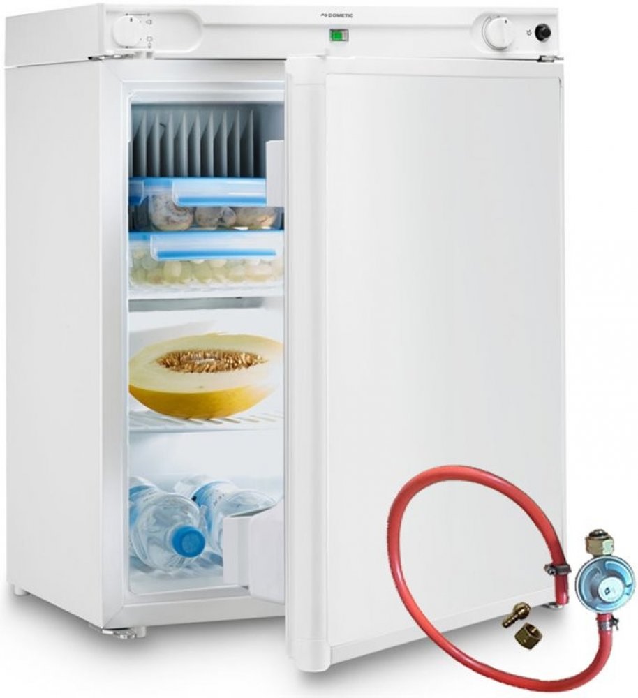 3-cestná absorpční chladnička na 12 V, 230 V a plyn • Objem brutto: cca 56 litrů, z toho 5 litrů mrazicí složku • Bateriový zapalovač • Chladící výkon: Chladnička +7 ° C, mraznička do -12 ° C při venkovní teplotě do 32 ° C (odpovídá třídě klimatu SN)