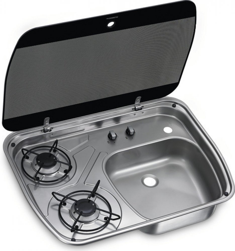 Kombinace vařiče se dřezem se skleněným víkem od výrobce Dometic Kombinace vařiče se dřezem se skleněným víkem Se dvěma hořáky Včetně pojistky zapalování 30mbar Výkon: 3,2kW Spotřeba plynu: 233 g/h Vnější rozměry: 660 x 445 mm / výška 146 mm Hmotnost: 6 kg