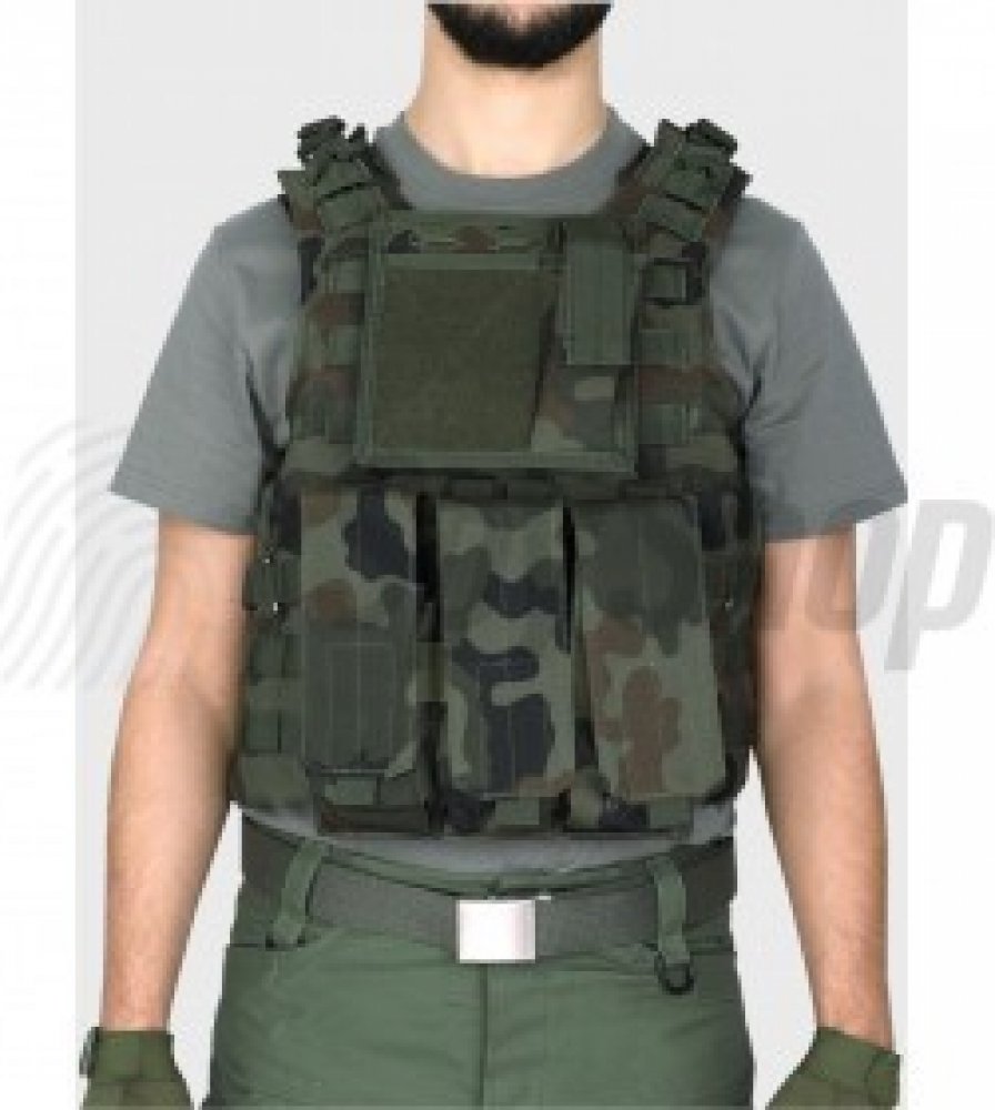 Trojité pouzdro pro zásobníky M4/M16 Inovativní systém rychlého uvolnění Přihrádky na balistické pláty Možnost připojit další vybavení Vyrobeno dle vojenských standardů