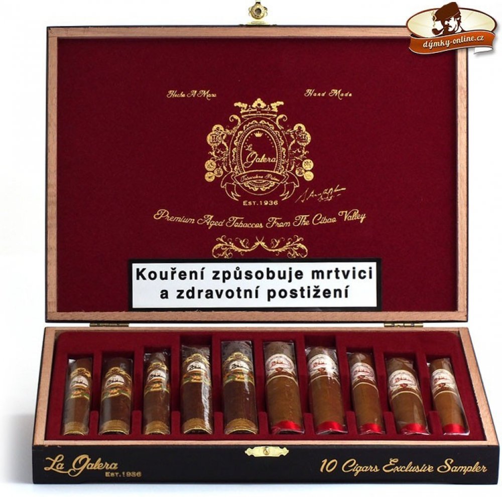 Dárkový set s výběrem deseti exkluzivních doutníků La Galera, který je určen pro milovníky kvalitního pokouření. Set obsahuje: - Connecticut Chaveta - Connecticut El Lector - Habano Chaveta - Habano El Lector - Connecticut Cortador - Connecticut Cepo - Connecticut Bonchero No.4 - Habano Cortador, - Habano Cepo - Habano Bonchero No. 4