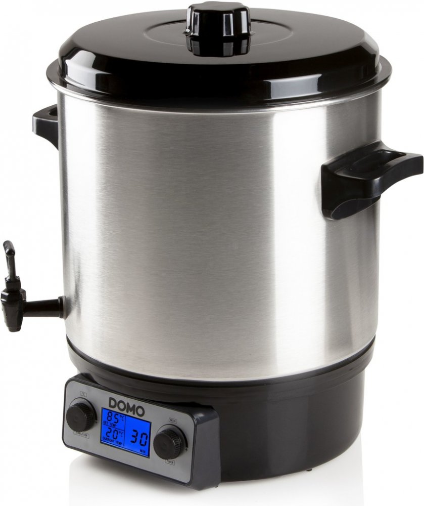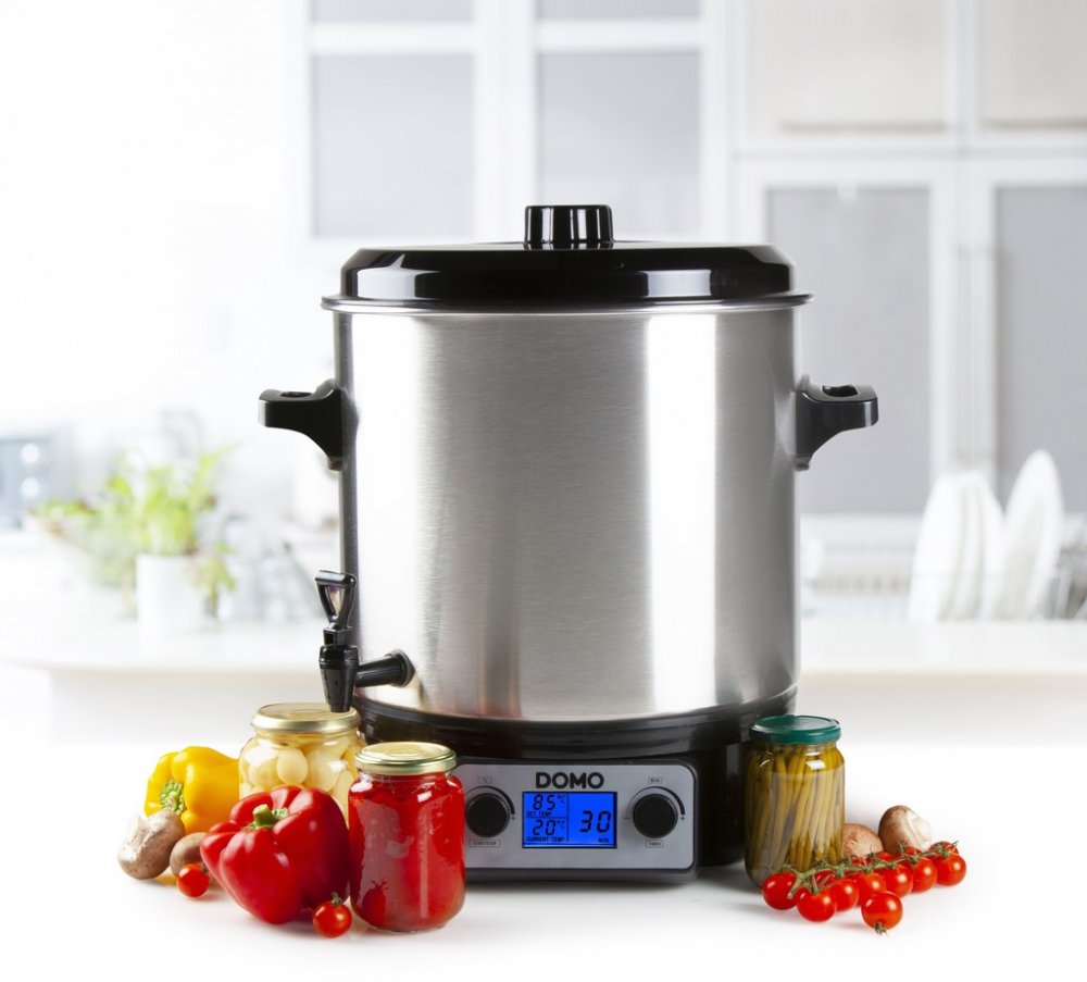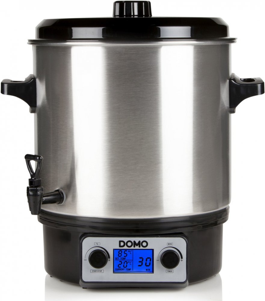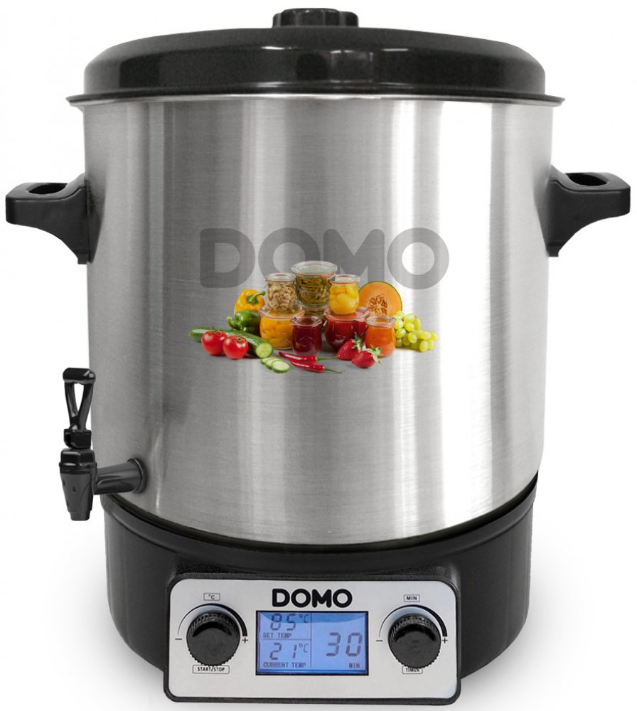 Domácí zpracovávání ovoce je opět v kurzu. Díky zavařování si můžeme uchovat vlastní úrodu po celý rok. Zapomeňte však na zastaralé postupy, s plně automatickým zavařovacím hrncem Domo připravíte zavařeniny na zimu bez problémů i jako naprostý začátečník. Plně automatický zavařovací hrnec s LCD displejem, díky kterému lze plynule a přesně nastavit teplotu a čas. Široké možnosti použití díky vyjímatelné záslepce výpustného kohoutu - zavařování, příprava guláše i stáčení horkých nápojů. Vylepšená verze s přesným hlídáním teploty.